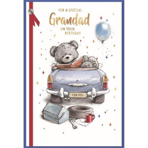 material card design balloon car teddy bear text contents 6 envelopes occasion birthday card recipient grandfather