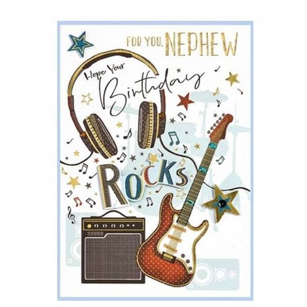 Read Morematerial card design guitar headphones printed speakers text occasion birthday card recipient nephew