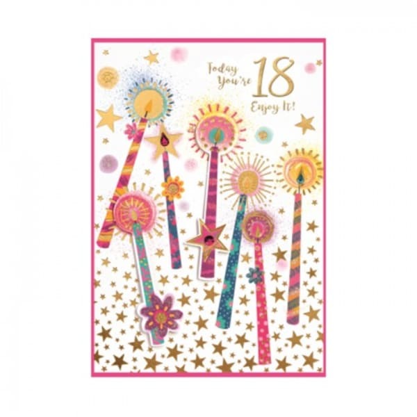 Material: Card. Design: Candle, Printed, Stars, Text. Contents: 6 Envelope. Occasion: 18th.