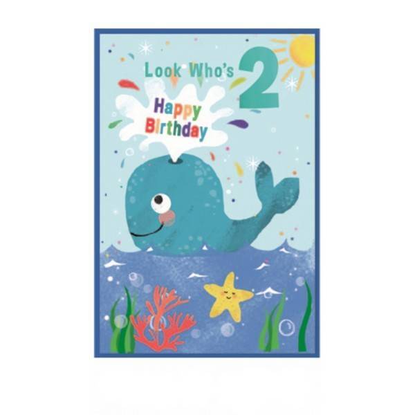 Material: Card. Design: Bubbles, Star, Starfish, Sun, Text, Whale. Contents: 6 Envelope. Occasion: 2nd Birthday.