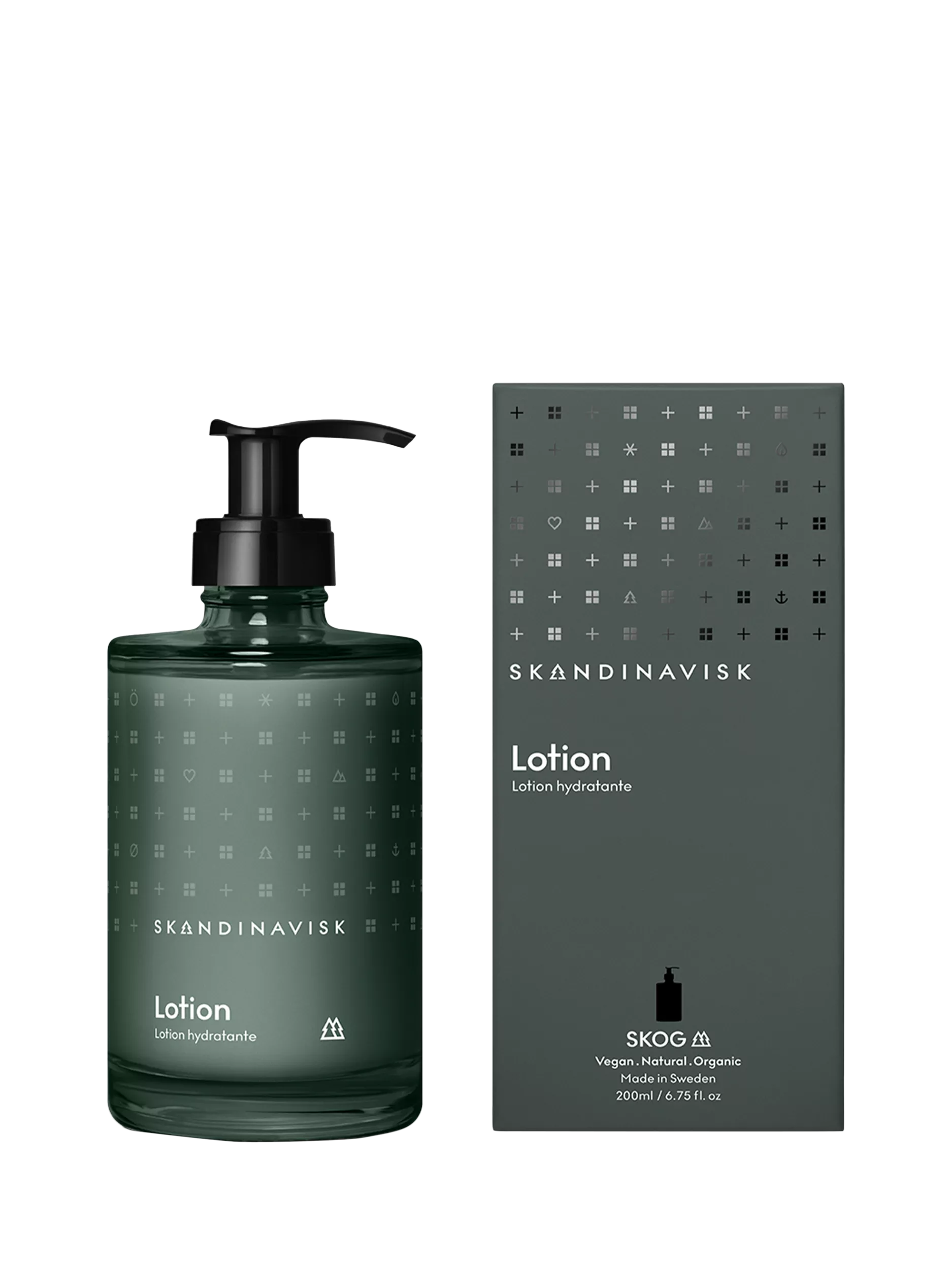 Scent notes: Pine needles and fir cones, birch sap and woodland lily of the valley. Richly nourishing and rapidly absorbent hand and body lotion with organic aloe vera and Swedish rapeseed oil to leave skin feeling soothed, moisturised and hydrated. Formulated with 96% natural ingredients, and 54% certified organic ingredients (excluding water). Box contains special edition coloured glass bottle with pump.