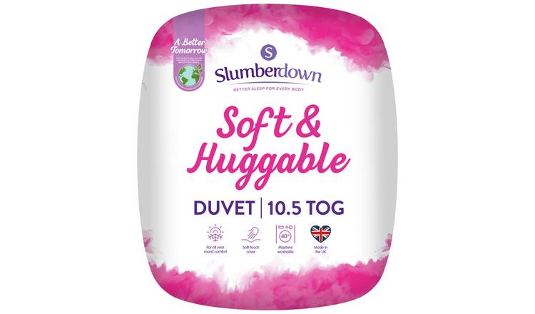 Read MoreAt Slumberdown, we believe every body deserves a better night sleep. The Slumberdown Soft and Huggable range has been created especially for everyday use. This 10.5 Tog Duvet is perfect for all year round use. The soft touch cover is wonderfully huggable ensuring you stay perfectly cosy all night. What's more, the product is Easy Care which means its machine washable and can be tumble dried.