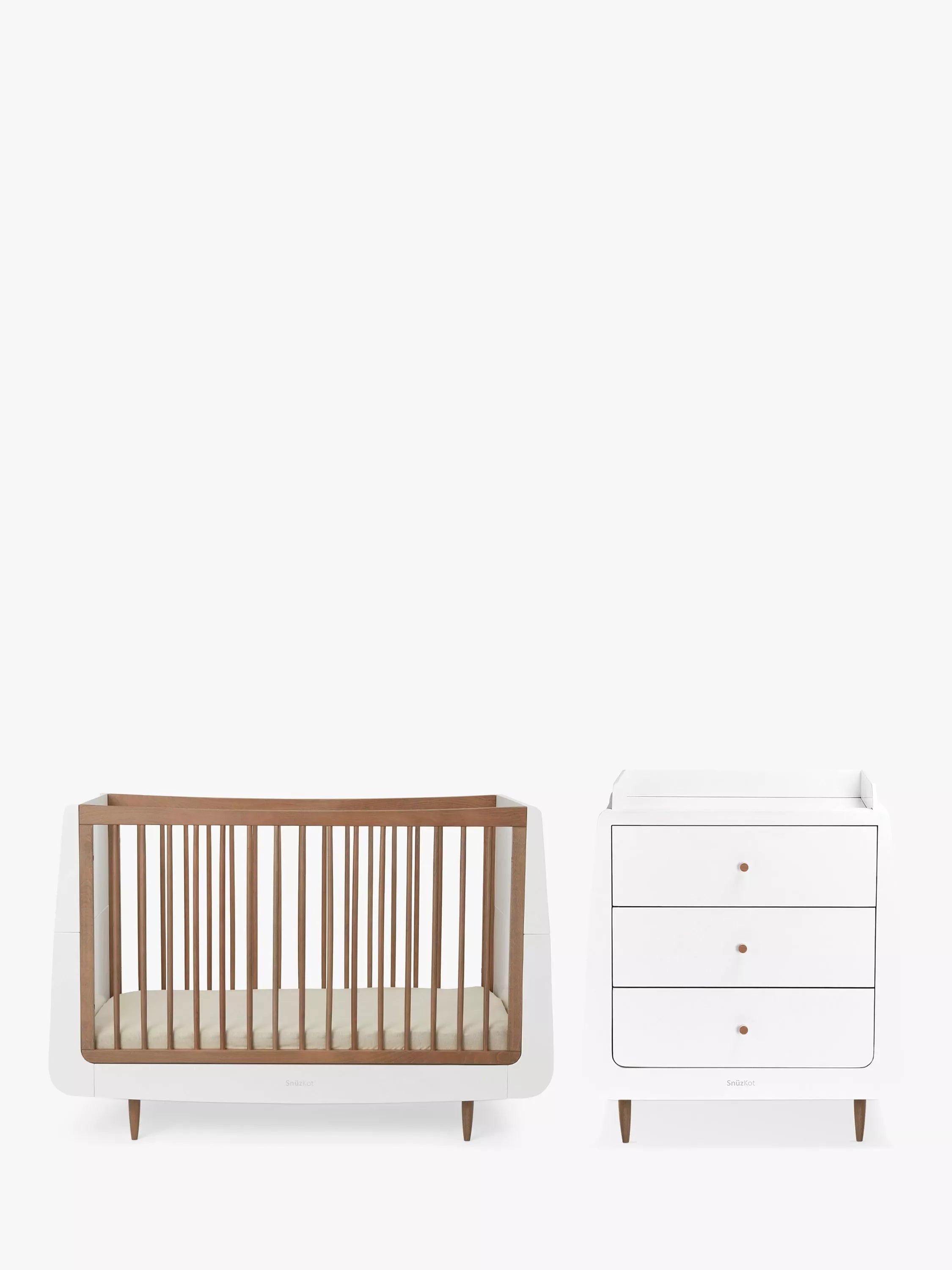 Cot: Designed to last, every SnuzKot is made using natural beech wood, without the use of MDF or veneer. The highest mattress position makes it easy to lift your newborn baby in and out, and as they grow and learn to sit and stand, the base can be lowered to help prevent them from climbing out.