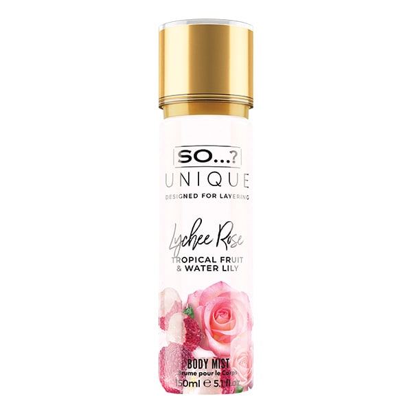 Wrap yourself in the freshness of SO…? Unique Lychee Rose Body Mist 150ml. The tropical top notes of lychee, rose and raspberry Leaves you with a delicate aroma.