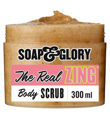 Soap & Glory The Real Zing Body Scrub provides a generous 300ml application suitable for frequent use. This formulation effectively works to gently buff away surface skin cells during your cleansing routine. The physical scrub action leaves skin feeling noticeably smoother and refreshed following thorough rinsing.