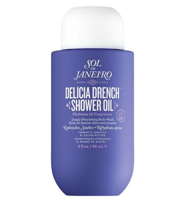 The Sol de Janeiro Delícia Drench Shower Oil is a 90ml formula that delivers deep hydration during cleansing. This body wash expertly converts from an oil texture to a rich milk upon contact with water. The formulation targets intense nourishment, resulting in skin that feels exceptionally velvety smooth.