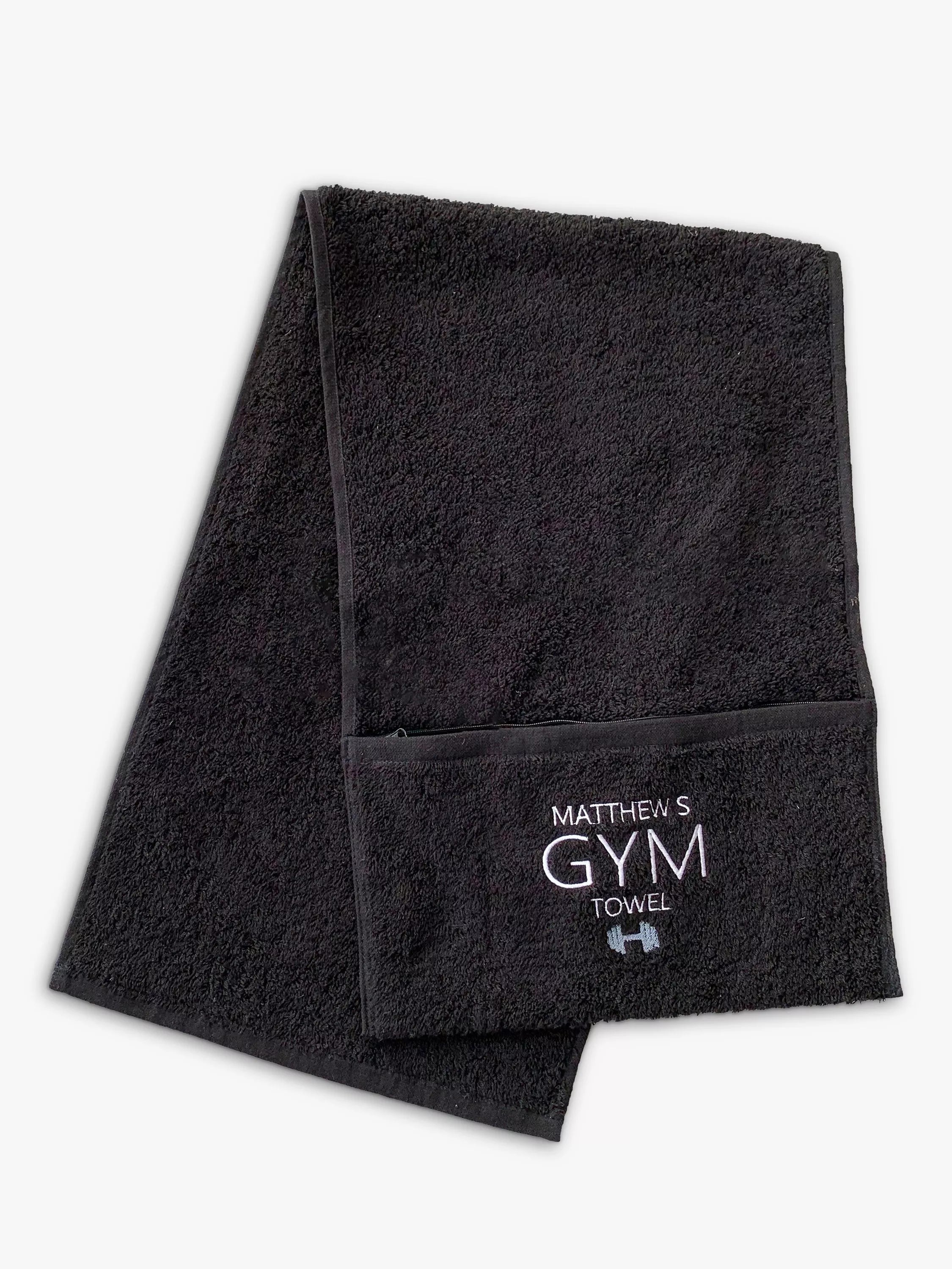 A personalised embroidered gym towel for a sporty, athletic person. This is a great personalised sports gift with lots of different sports to choose, ranging from cycling, running, tennis/ badminton, yoga, rugby, football and gym.