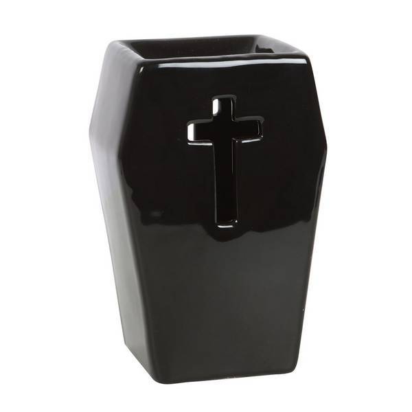 material ceramic height 14cm width 9cm depth 67mm design coffin cut out gothic please note candle not included essential oil not included packaging boxed cardboard plastic bag