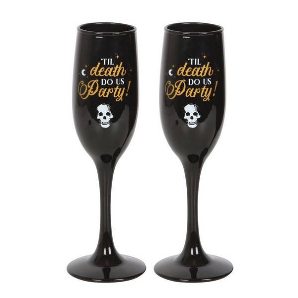 Explore this unique set of two drinking vessels featuring distinctive gothic-inspired detailing suitable for themed serving. These items present an intriguing aesthetic combining celestial and macabre elements for special occasions. They are carefully presented, coming boxed for convenient gifting or storage.