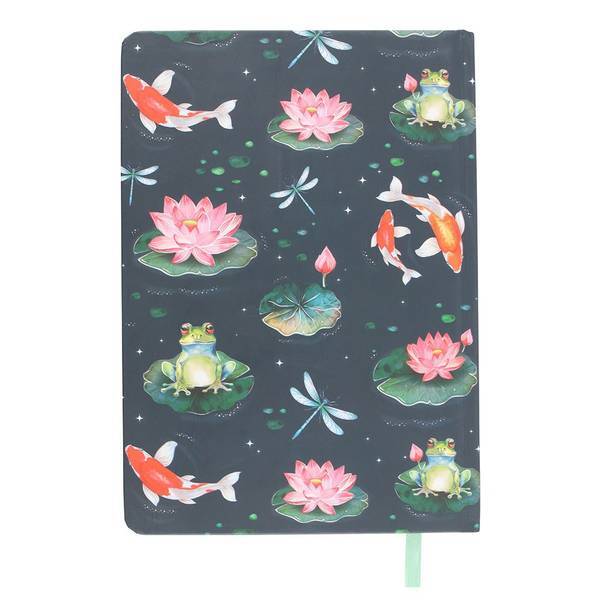 Read MoreMaterial: Paper. Length: 21cm. Width: 15cm. Gold Foil Page Edges, Lined Pages, Ribbon Marker. Depth: 1.5cm. Design: Frog, Koi, Lily Pads.