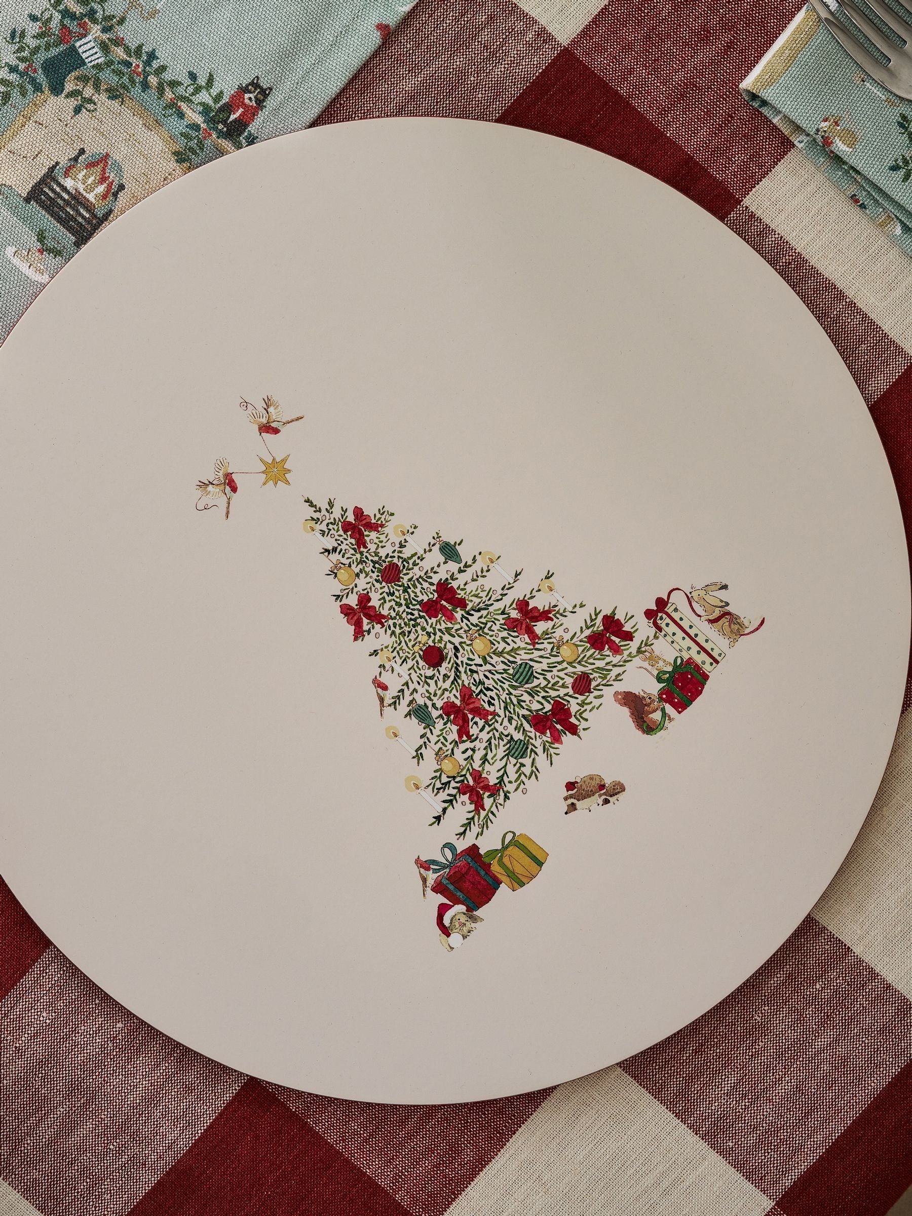 Create a warm, festive atmosphere with this set of four Cosy Christmas Placemats. Illustrated with Sophie Allport's timeless Christmas design, each placemat captures the joy of the season with a festive tree, woodland animals and presents stacked. Ideal for adding seasonal style to everyday meals and celebrations. Box of 4 Dia. 29 x D 1cm Made from slip-resistant cork with superior matt lacquered surface Heat resistant up to 110 degrees Coordinating items are available in the Cosy Christmas collection Size: ONE.