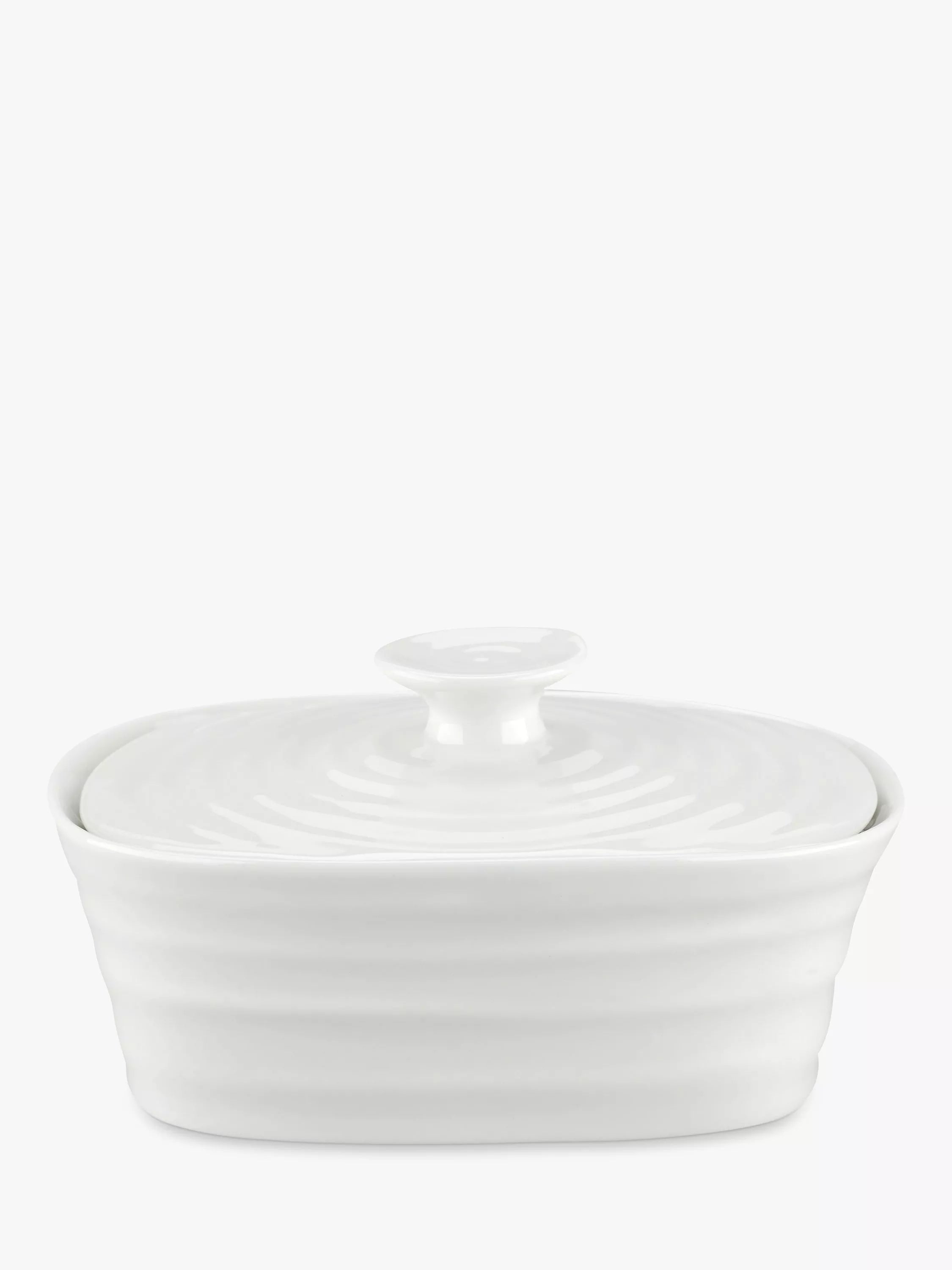 Store and serve butter using this elegant butter dish by Sophie Conran for Portmeirion. Designed with a soft rippled effect, the stylish porcelain dish will make a unique and sophisticated addition to your tableware.
