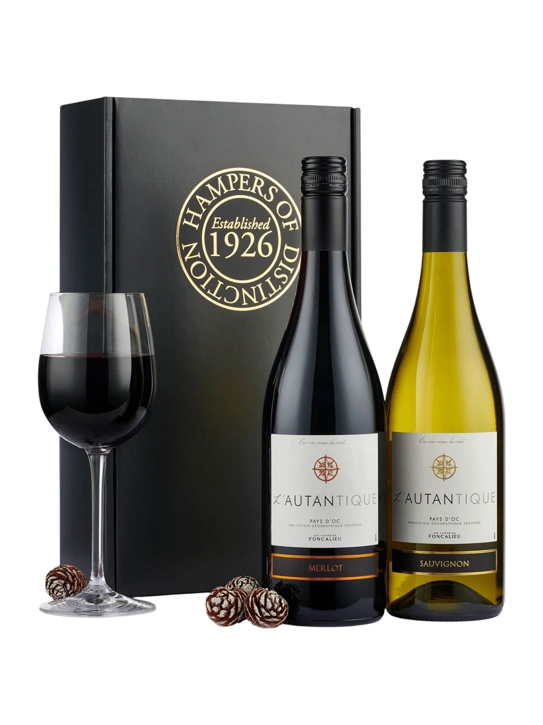 L Autantique Merlot 75cl L Autantique Sauvignon Blanc 75cl Packed in a Black Gift Box.