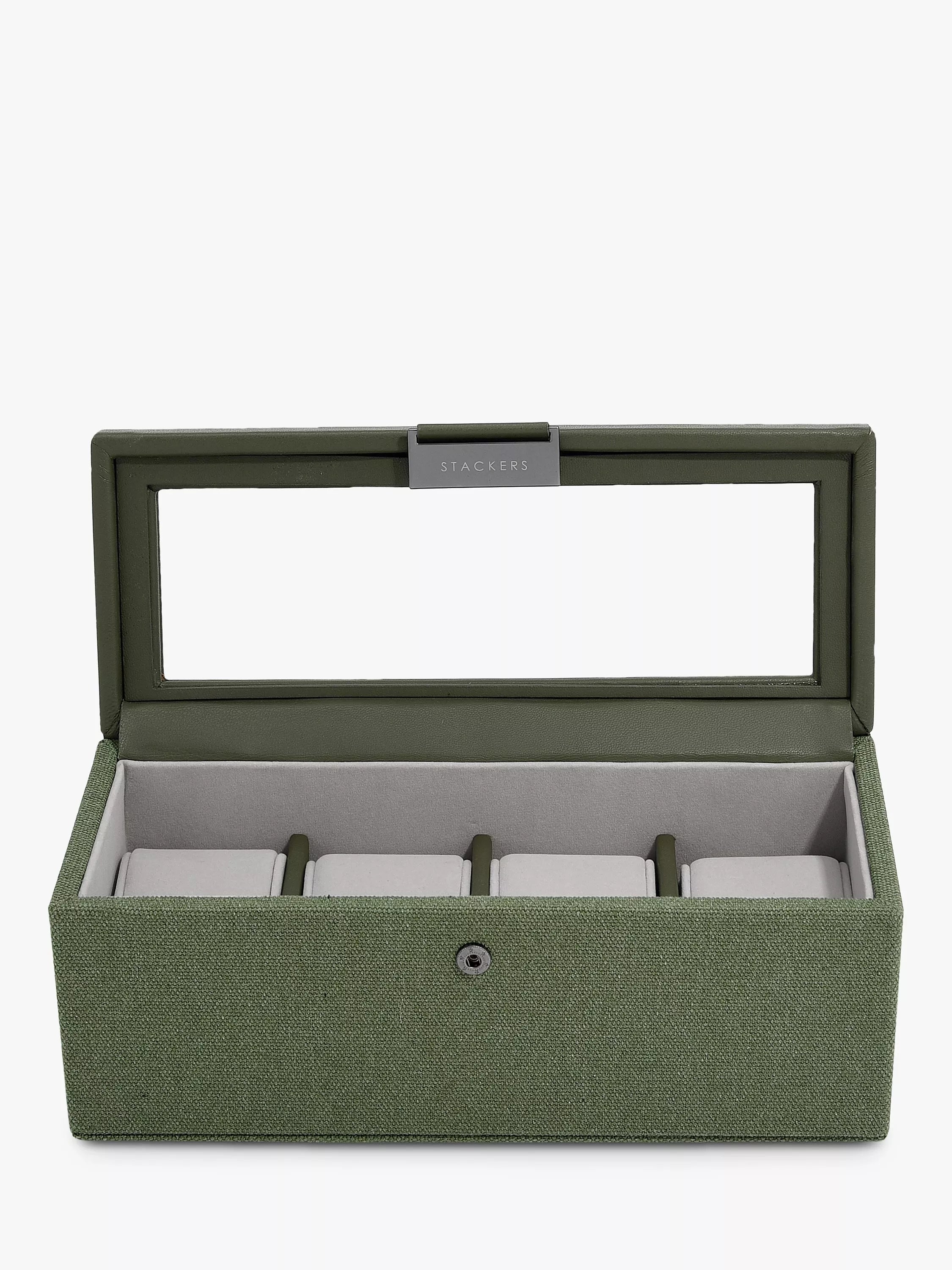 For the keen watch collector. Keep your watch collection organised and safe with one of our watch boxes. It features a clear glass lid, to keep your watches safe and visible, and with soft watch pads, to ensure your watches stay scratch and dust-free. With a canvas and faux leather exterior for a contemporary and stylish look.