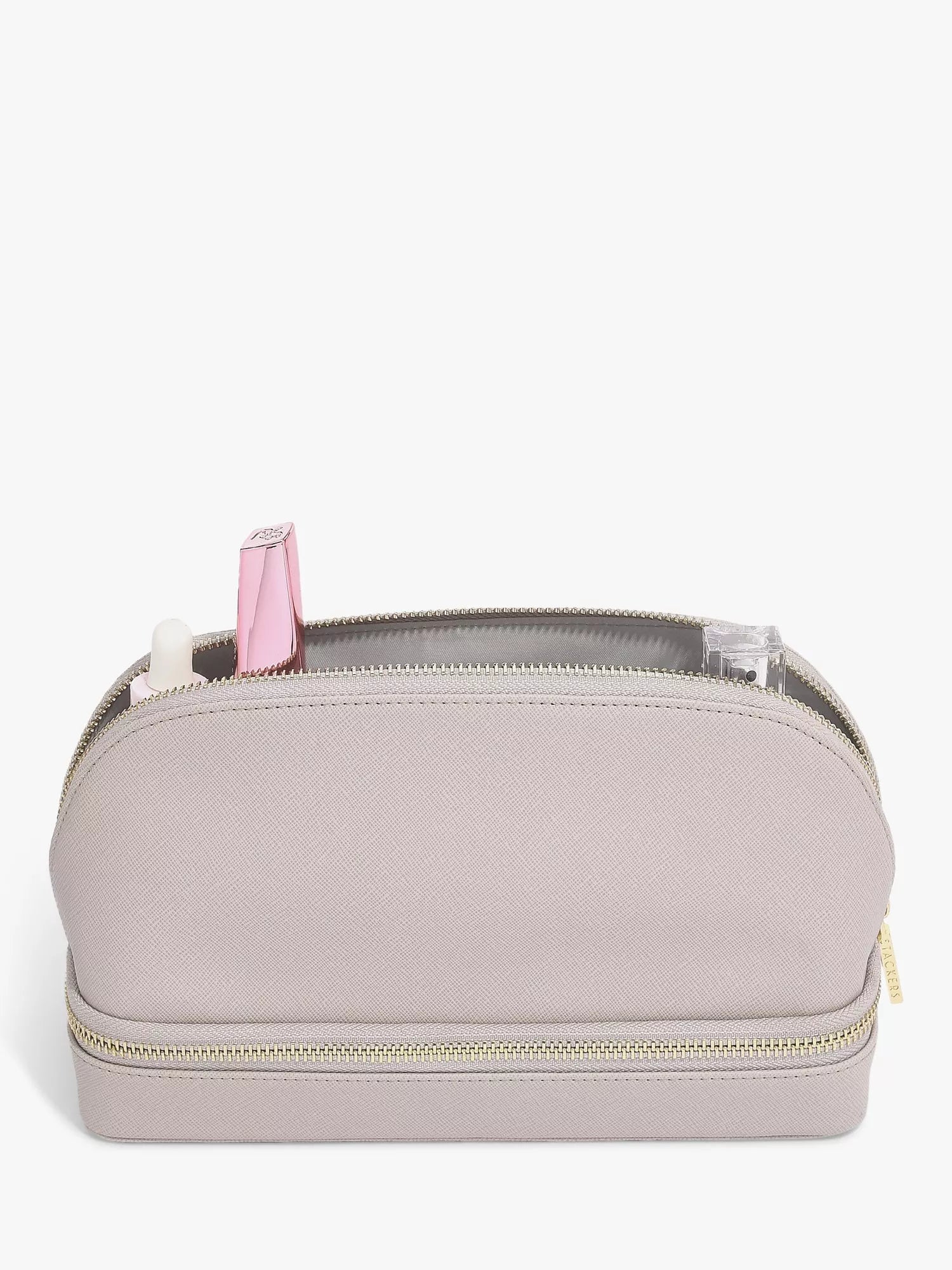 The zipped compartment at the bottom has been designed to keep your jewellery secure, with a removable necklace section, ring roll, removable stud earring section and small sections for additional trinkets. The large top section can comfortably fit your makeup collection and includes a small pocket with a removable mirror for when you are on-the-go.None