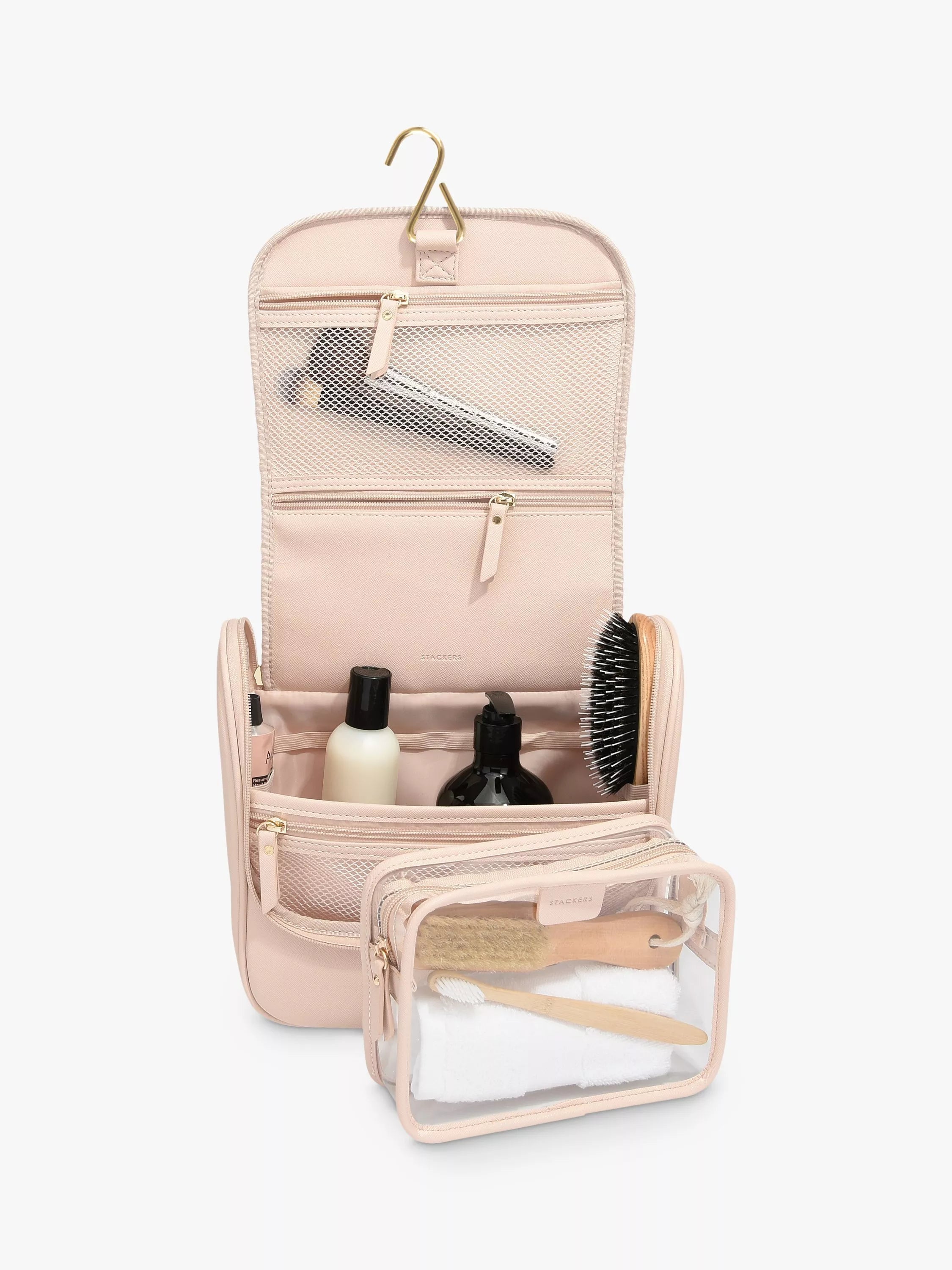Perfect for the travelling woman, this Stackers hanging wash bag features a clear removable bag so that liquids can be displayed at airport security.