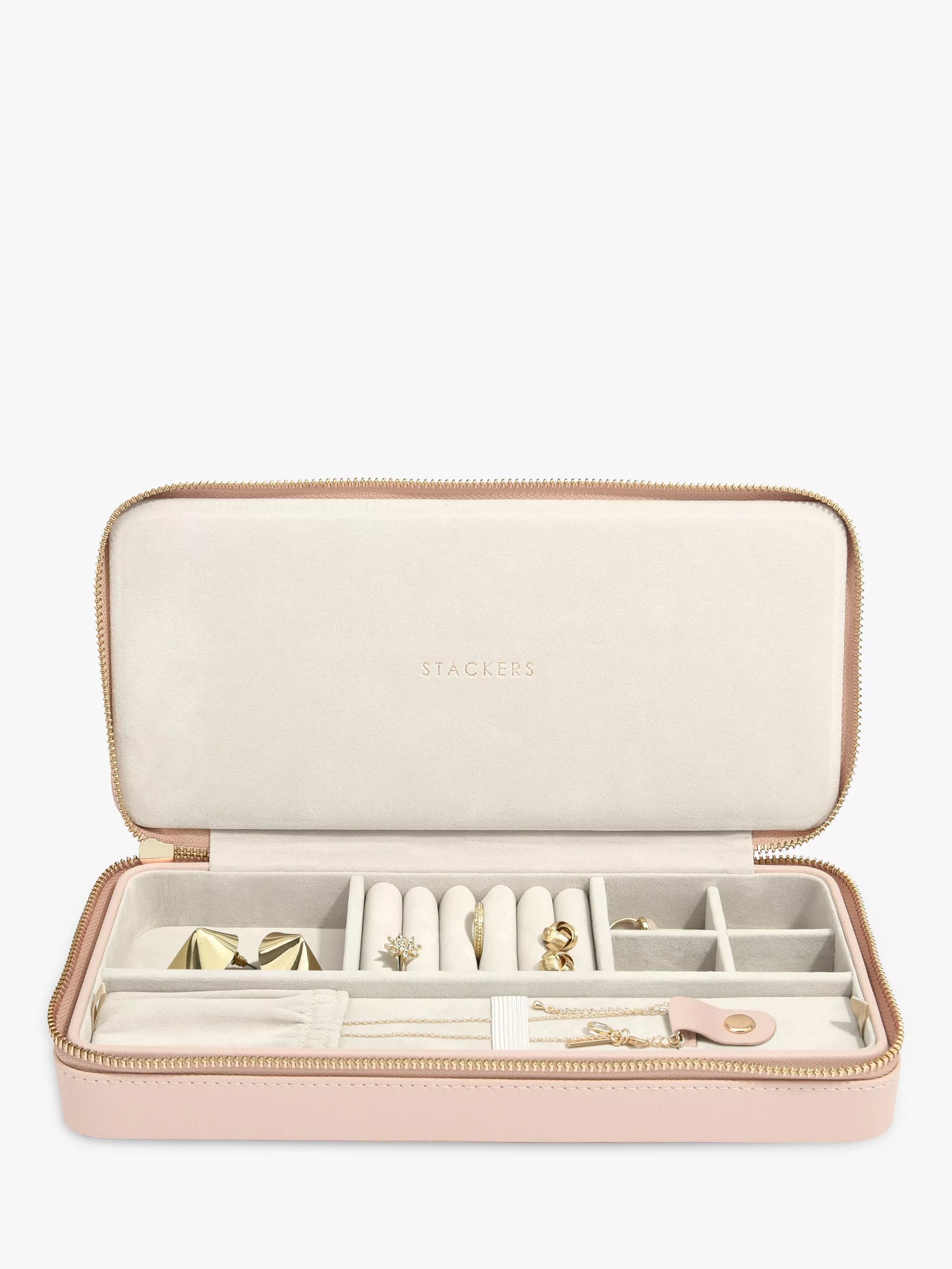 This beautiful Stackers necklace travel box features 7 different compartments with a removable necklace storage insert