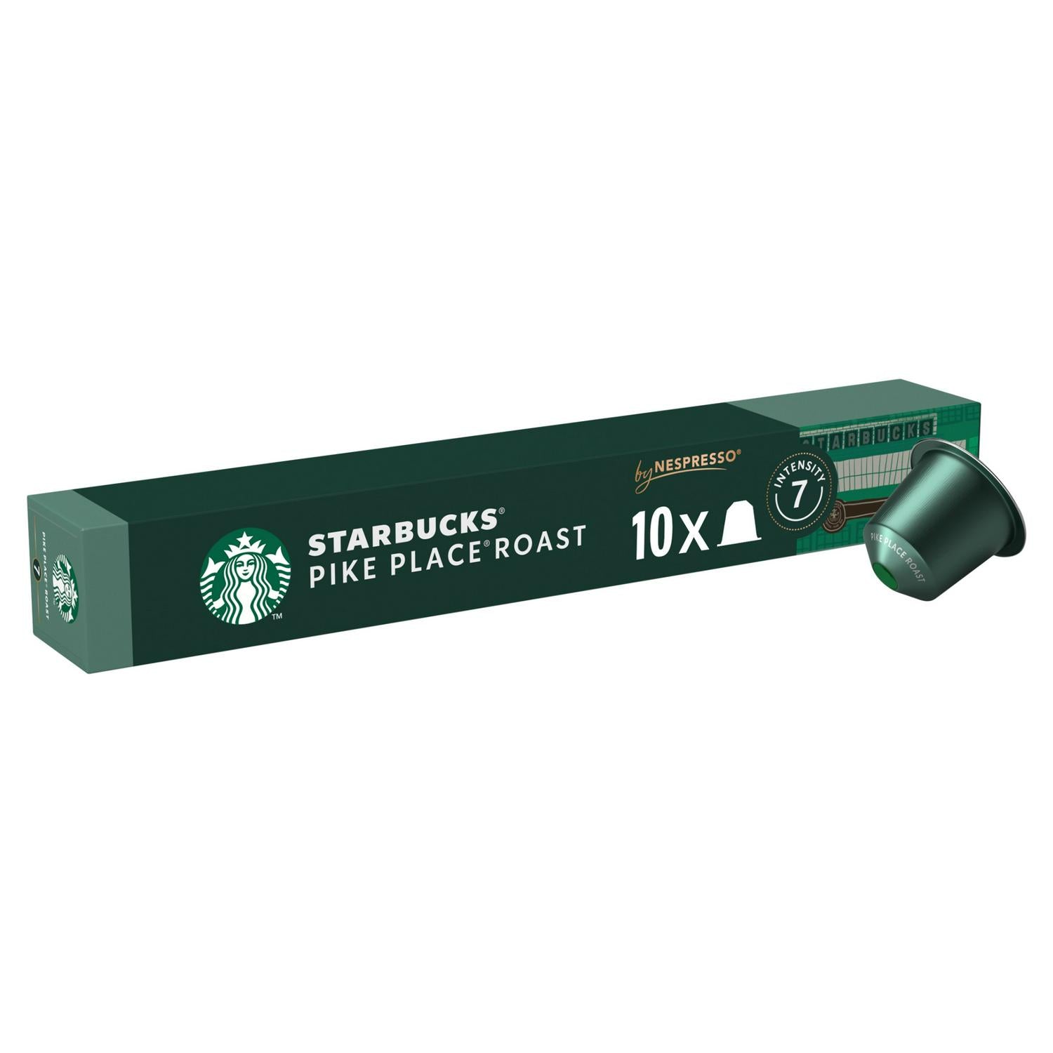 Enjoy the signature Starbucks Pike Place Roast conveniently packed into capsules for your Nespresso machine. This medium roast coffee is crafted from 100% Arabica beans to deliver a consistently smooth flavour profile. These Arabica coffee pods offer a balanced experience that is easy to prepare at home.