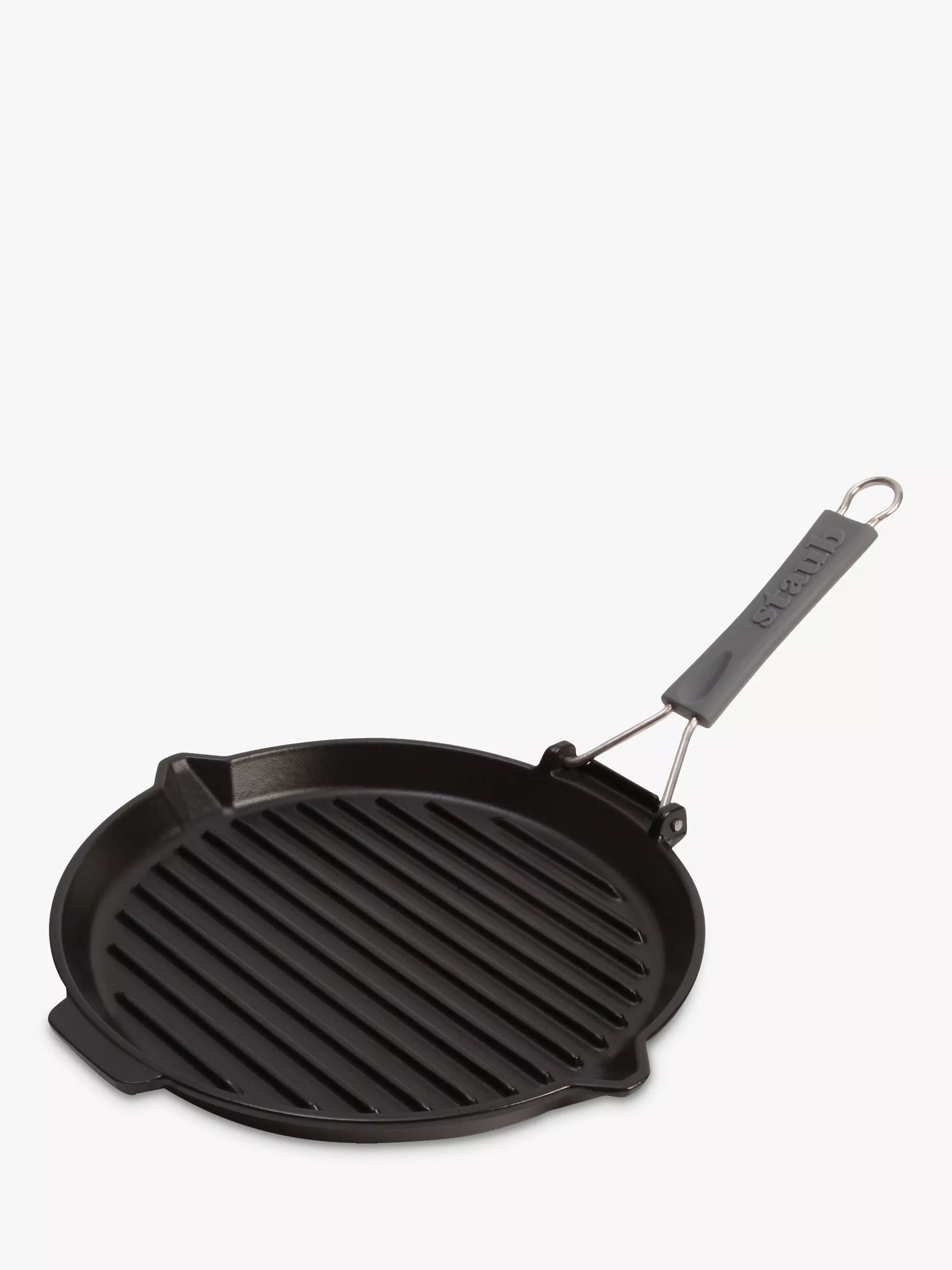 Perfectly sear meat, fish or vegetables, barbecue-style with the round grill pan from STAUB. Grooves in the pan leave patterned sear lines, just like on a barbecue. They also drain fat to achieve juicy and tender results while promoting healthier cooking.