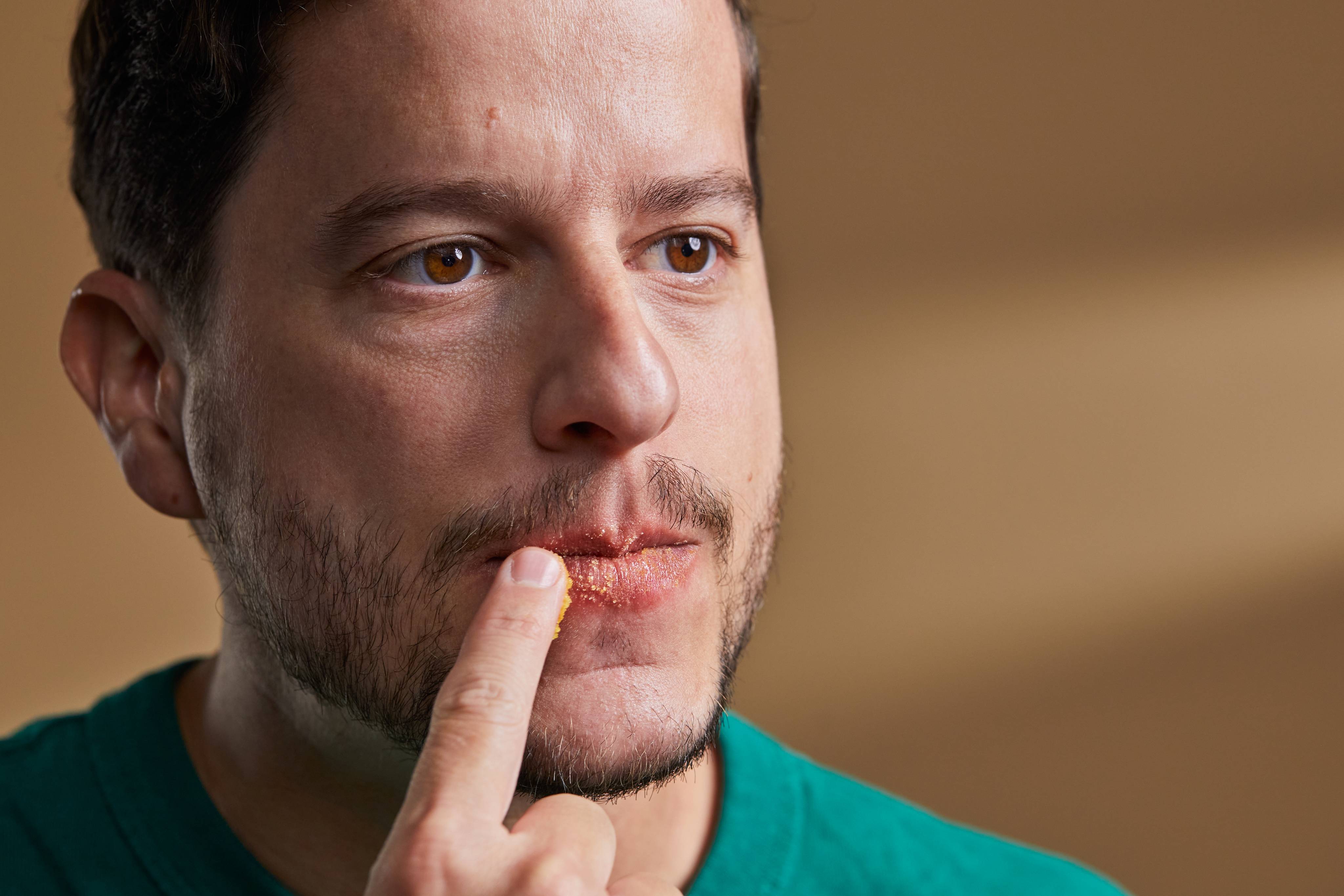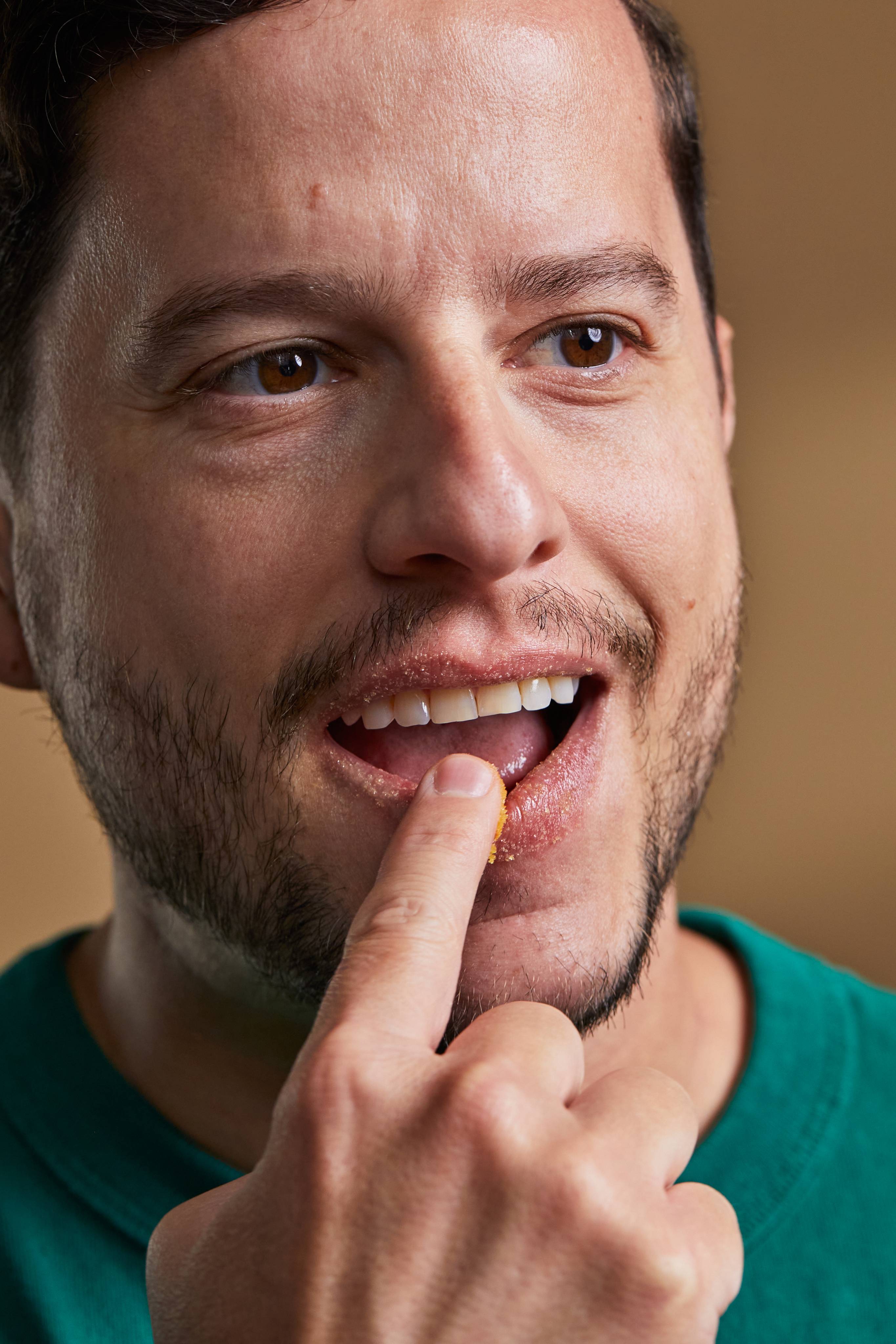 Prep your pout with a pea-sized amount and scrub your lips soft, then wipe off the excess.
