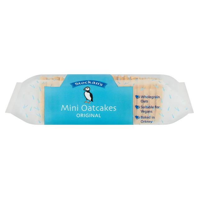 Product details Description Wholegrain oats Baked in Orkney High Fibre Suitable for vegans The Orkney Islands, home to the puffin or 'Tammie Norrie' as it is affectionately known, are also home to the bakery where our delicious Stockan's Oatcakes are made. Mini Oatcakes are perfect for snacking, children's lunch boxes... Read More