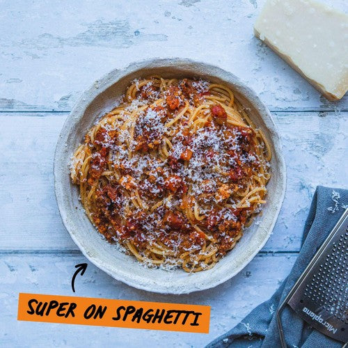 Our Classic Bolognese is made with British Beef and Pork mince that has been simmered in red wine and sun-dried tomatoes, lightly seasoned with rosemary and bay leaves.