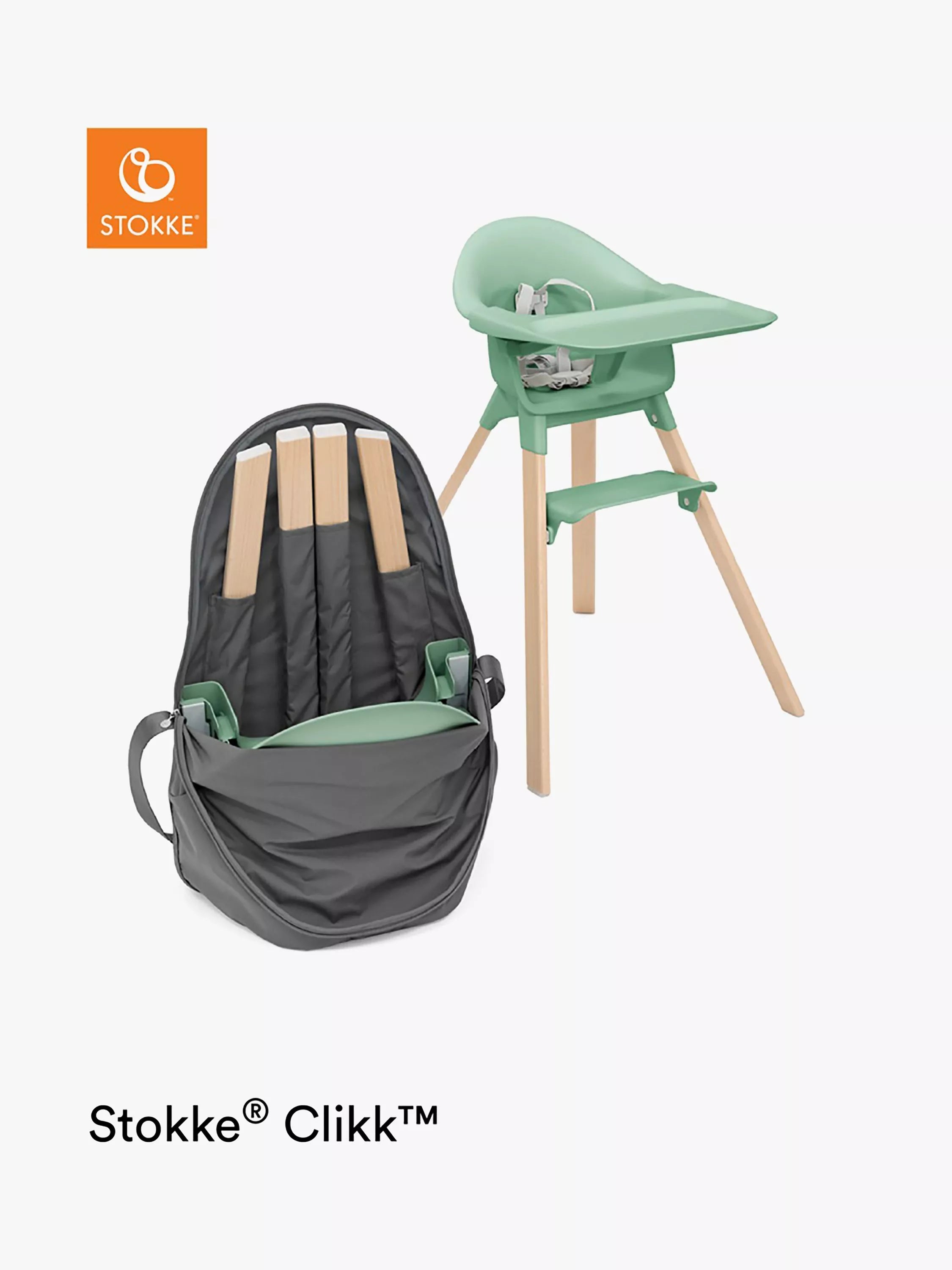 Essential for travel and storage, the Stokke® Clikk travel bag is perfect for any family on the move. The robust fabric ensures that your highchair is protected for your journey. With a convenient carry handle, this bag guarantees you can move around with ease. Compatible with the Stokke® Clikk highchair. Ideal for travelling and storage, the bag offers a solid strap in trendy webbing for one shoulder carrying. The bag is complete with separate pockets to store legs, a large zipper for easy access, and a reflective logo print.