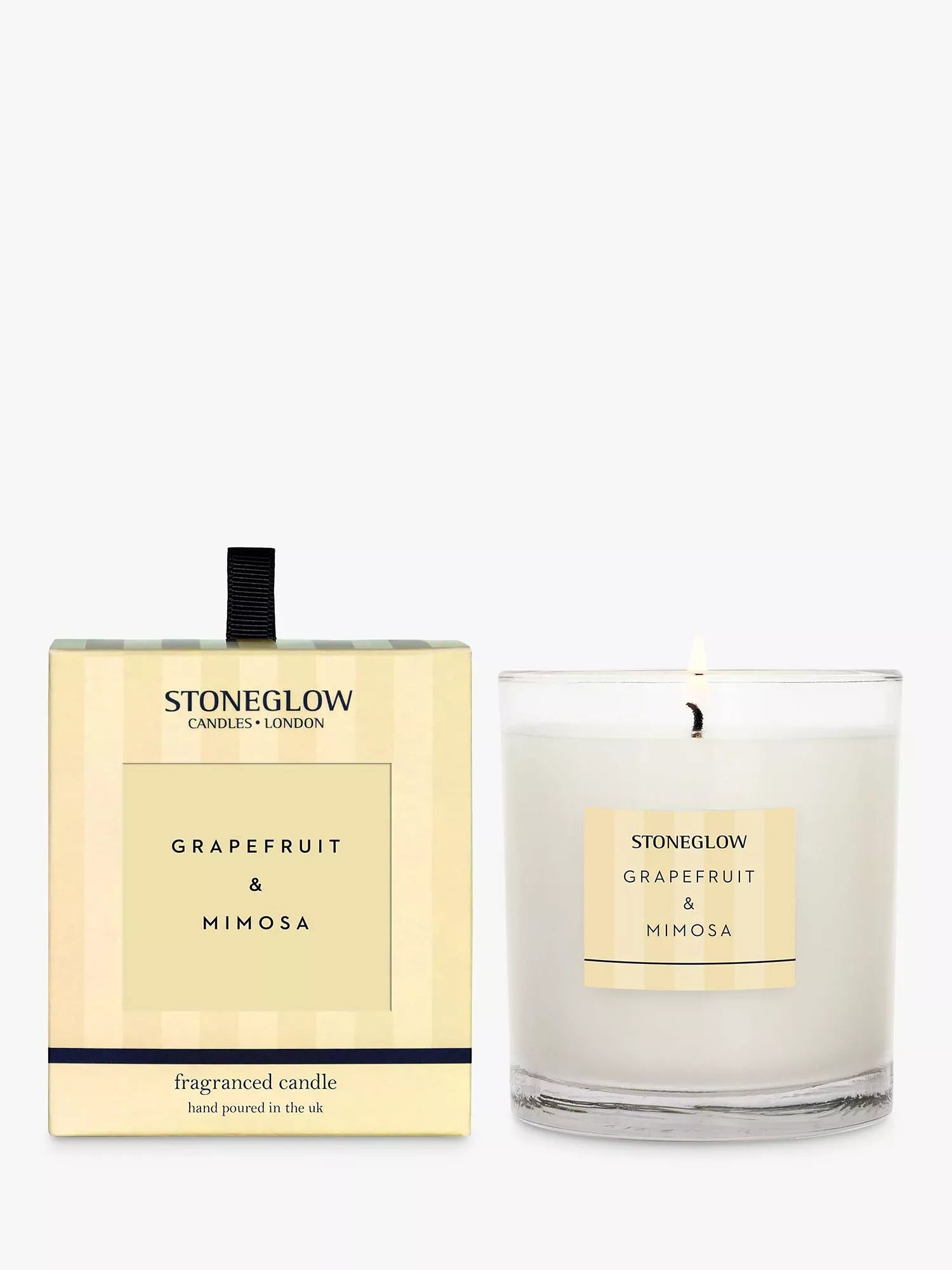 Indulge in the vibrant aroma of Stoneglow's Modern Classic Grapefruit & Mimosa candle, a delightful blend of zesty citrus and delicate florals. This handcrafted candle, made in the UK by skilled artisans, fills your home with a sophisticated fragrance, perfect for creating a relaxing atmosphere.