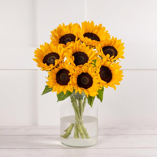 This vibrant arrangement, titled Sunflower Abundance, brings a cheerful, sunny presence to any interior space. The bouquet features several large, striking blooms designed to enhance your home décor instantly. These are prepared as a ready-to-display floral collection.
