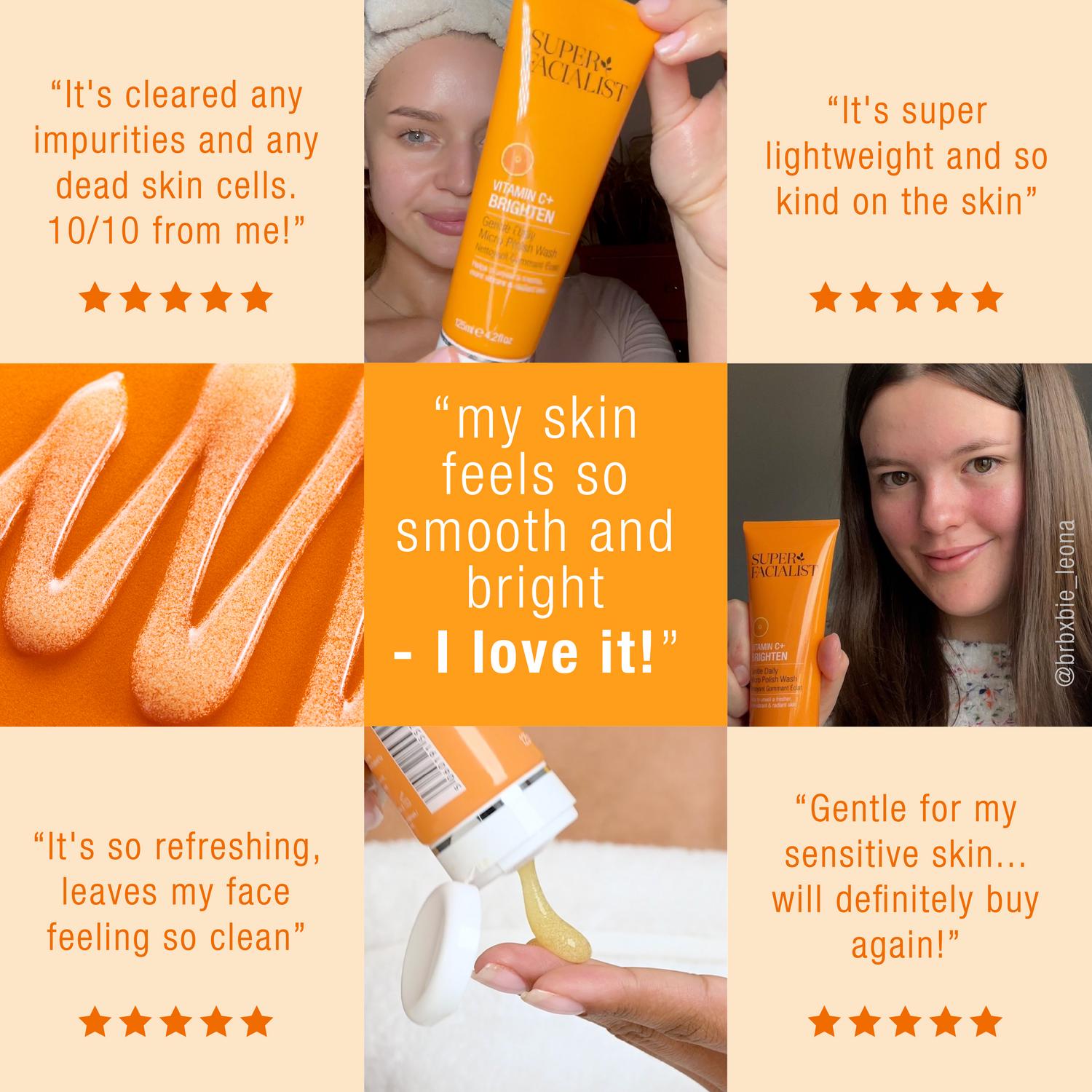 This gentle exfoliating face wash from Super Facialist deeply cleanses the skin to help boost overall radiance. Formulated with key ingredients, this wash leaves your complexion feeling noticeably smooth and hydrated after use. It is a vegan friendly product that has also been dermatologically tested for quality assurance.