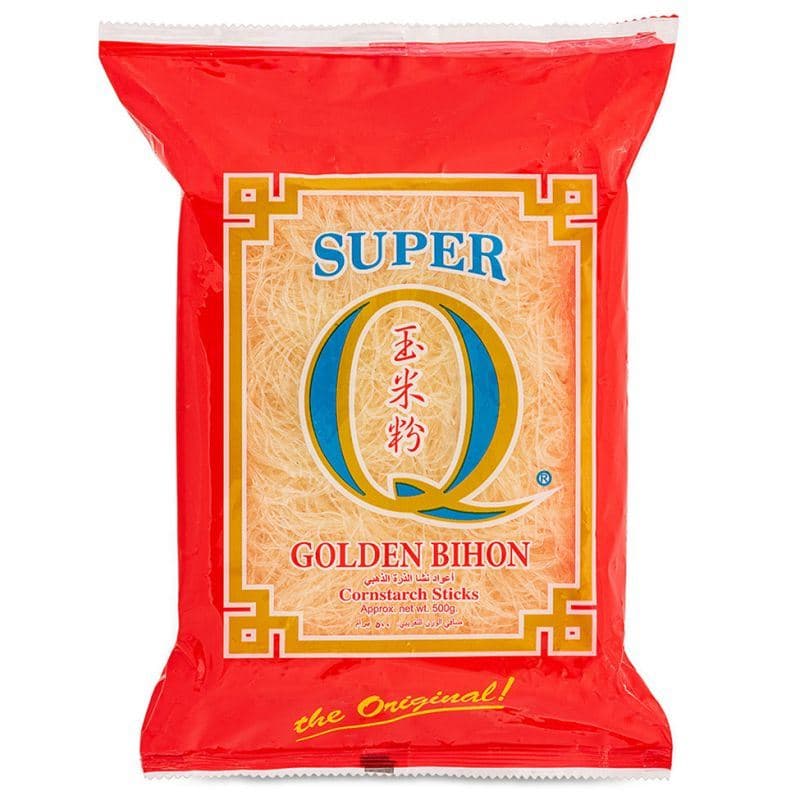 Super Q\u2019s Golden Bihon Cornstarch Sticks are a type of Filipino vermicelli-style noodle produced from cornstarch, which gives the noodles their bright yellow colour. They have a compact, hard, and rectangular shape - carefully cut into thin strands. The cooked product is soft, smooth, and bouncy. Golden Bihon noodles are used in Filipino dishes popular in the Cebu and Visayas regions. A must-have for fans of Filipino cuisine.