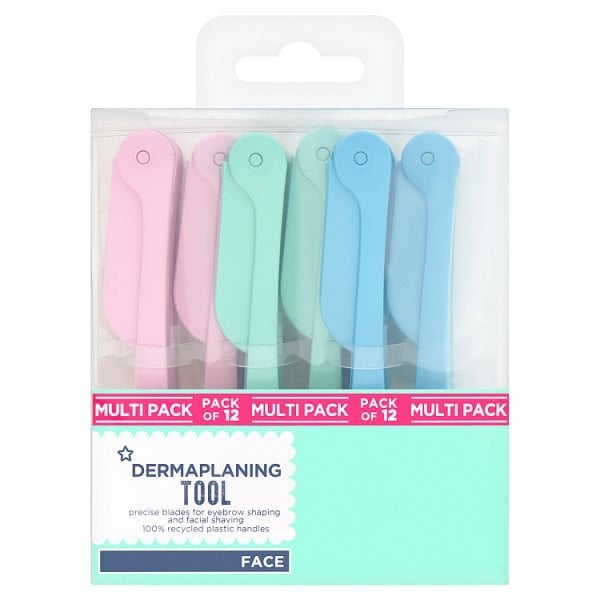 This value pack supplies twelve dermaplaning tools, perfectly suited for precision shaping and general hair removal tasks. Each unit incorporates a sharp stainless steel blade combined with a protective mesh design for controlled trimming effectiveness. The durable handle is constructed from 100% PCR and ABS materials, offering good wear resistance during handling.