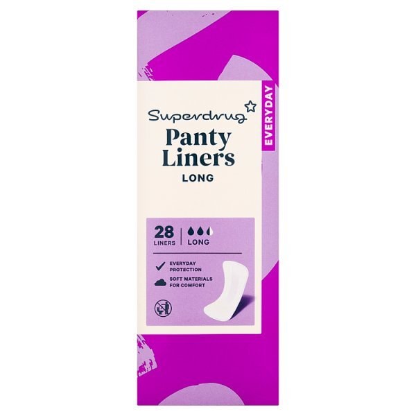 Superdrug Long Panty Liners are perfect for everyday use to keep you feeling fresh throughout the day. Longer length for additional coverage, they have a body-contoured shape, are fragrance free and dermatologically tested.