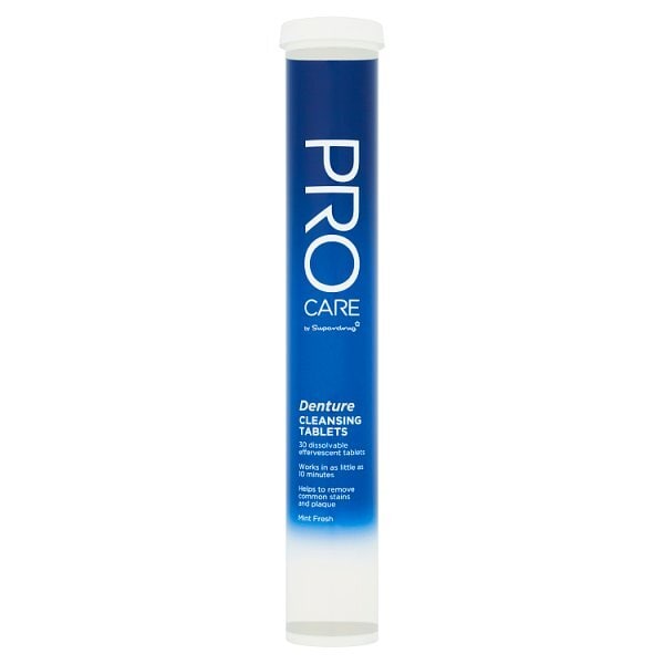procare denture cleansing tablets have been specially formulated to dissolve quickly and remove common stains they also help to fight plaque and tartar build up leaving dentures clean fresh and free from odour