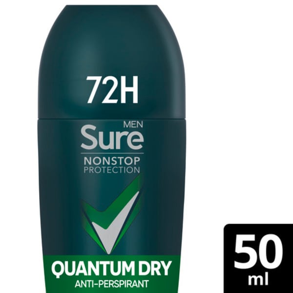sure men antiperspirant deodorant roll on nonstop quantum dry 50ml provides 72 hour protection against sweat and odour this antiperspirant deodorant roll on provides 2x more powerful protection featuring unbeatable antisweat microtechnology and our unique motionsense technology
