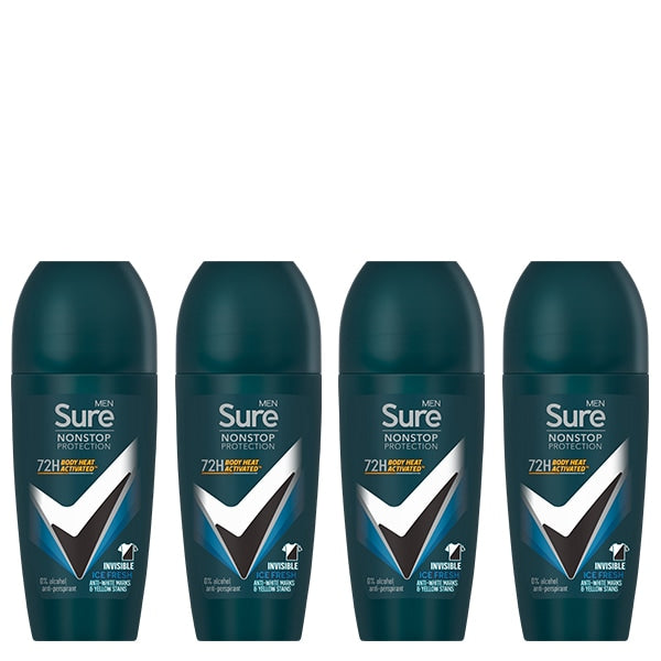 • Includes a bundle of four Sure Men Nonstop Invisible Ice roll-ons.