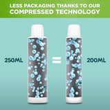 • Compressed 200ml can – same lasting power as a 250ml can, reducing waste.