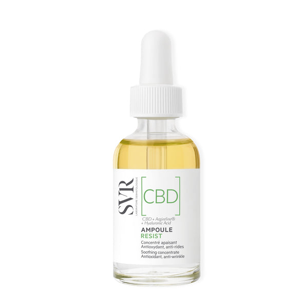 This SVR [CBD] Ampoule Resist serum targets sensitised and stressed skin presenting with redness, discomfort, and fine lines. It harnesses the power of pure CBD to immediately relieve irritation while actively working to correct visible signs of stress on the complexion.