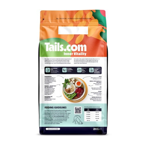 We created tails.com in 2013 with a dream - to change the world of pet food for good, starting with tailored recipes individually formulated for each and every dog. We've taken everything we've learned since then to create tails.com Inner Vitality, a range tailored to your pet's age, size and lifestyle. Every recipe is developed with our Animal Nutritionist and our Head Vet Sean McCormack BSc (Hons), MVB, MRCVS. Great tasting food, packed with specific ingredients to support digestion, bones, skin, coat and more. It's all about helping them live a long and active life by your side.