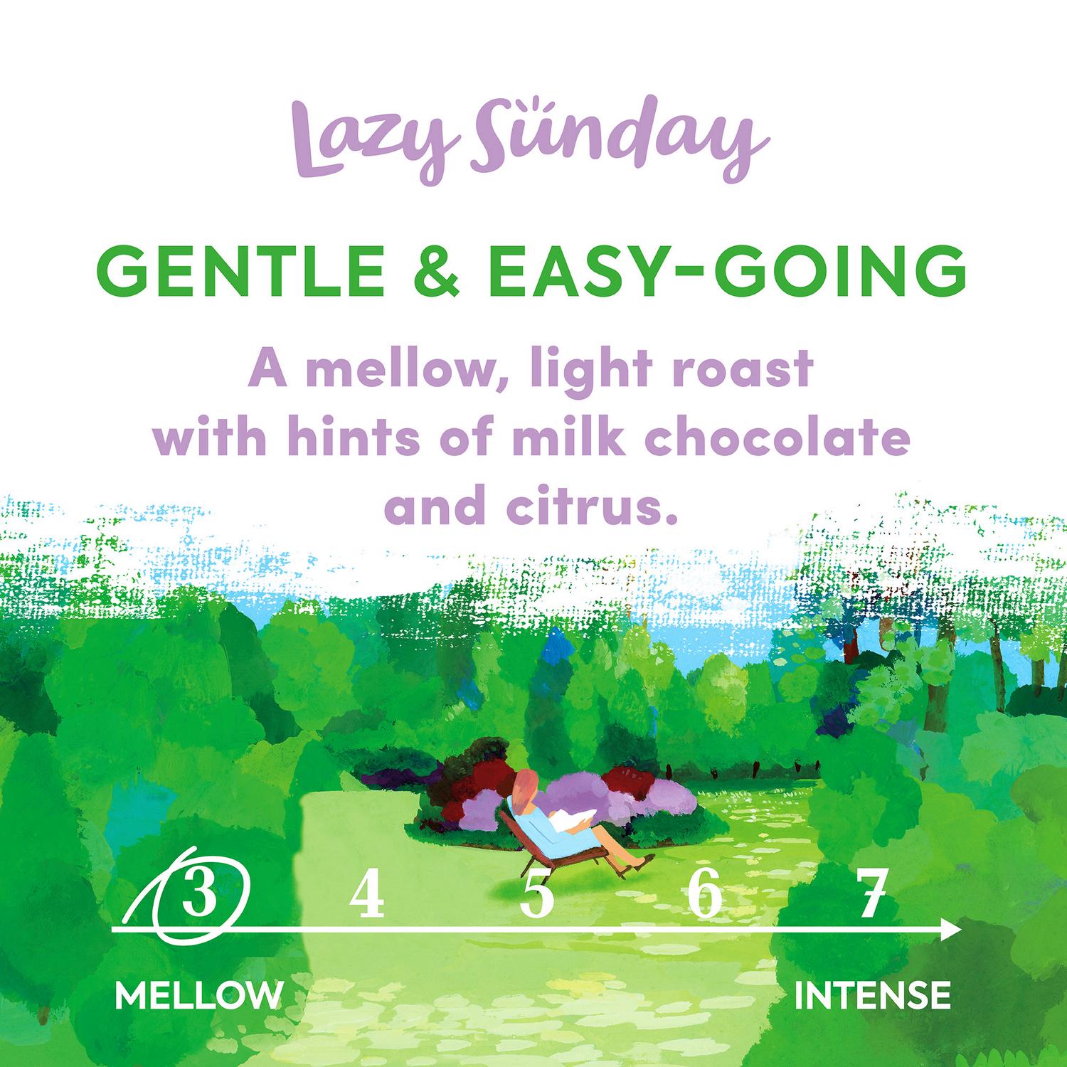 This Taylors of Harrogate Lazy Sunday coffee provides a gentle and easy-going experience, perfect for relaxed moments. It is a mellow, light roast featuring discernible hints of milk chocolate and bright citrus notes. This premium blend is crafted exclusively using 100% Arabica beans for superior flavour consistency.