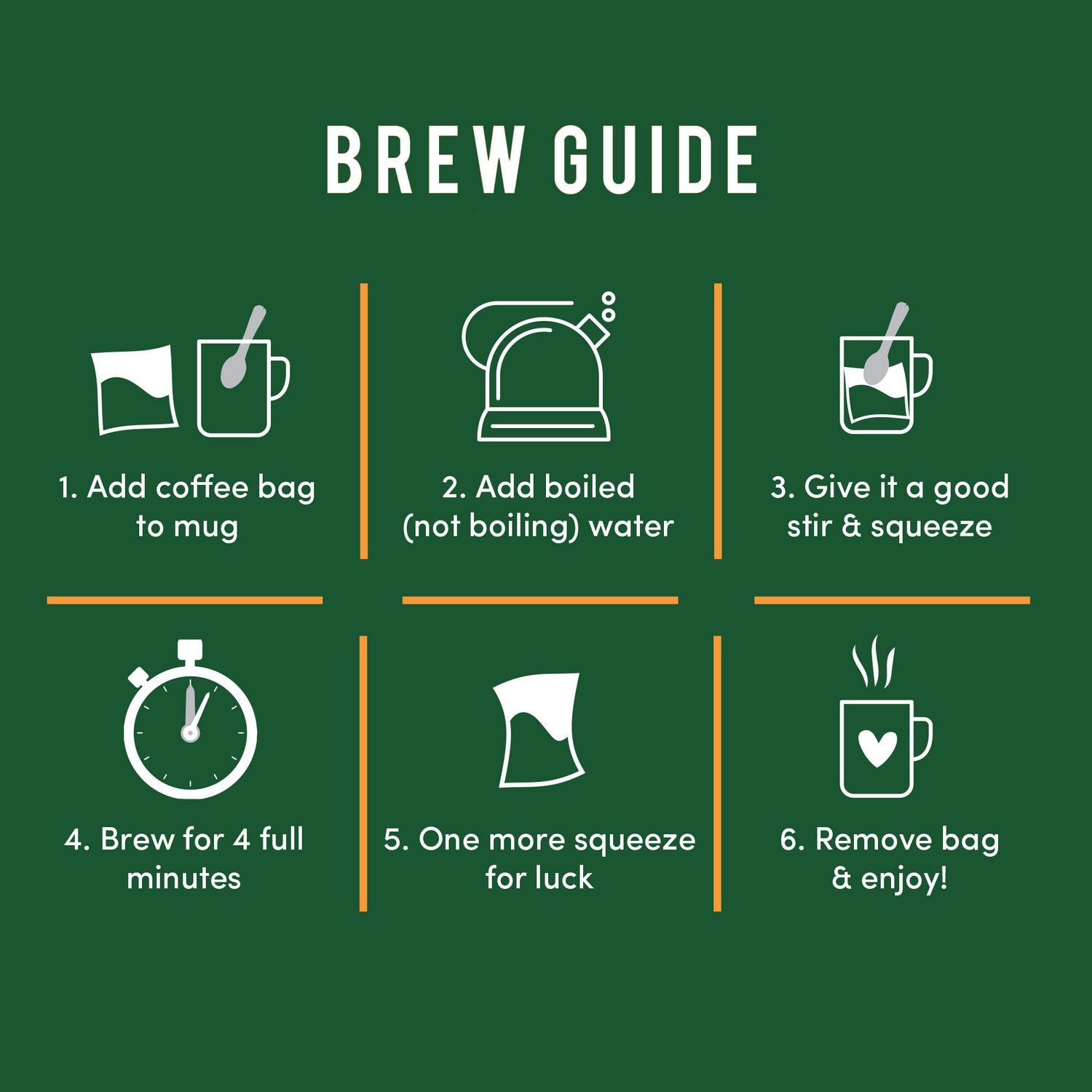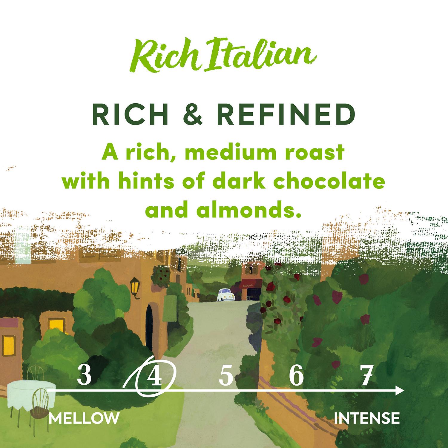 Rich & Refined A rich, medium roast with hints of dark chocolate and almonds Works just like a tea bag but for ground coffee. All the flavour without the mess. Our clever wallet-sized and individually wrapped bags let this elegant, Italian-inspired blend of African and Latin American ground coffee brew perfectly in your cup.