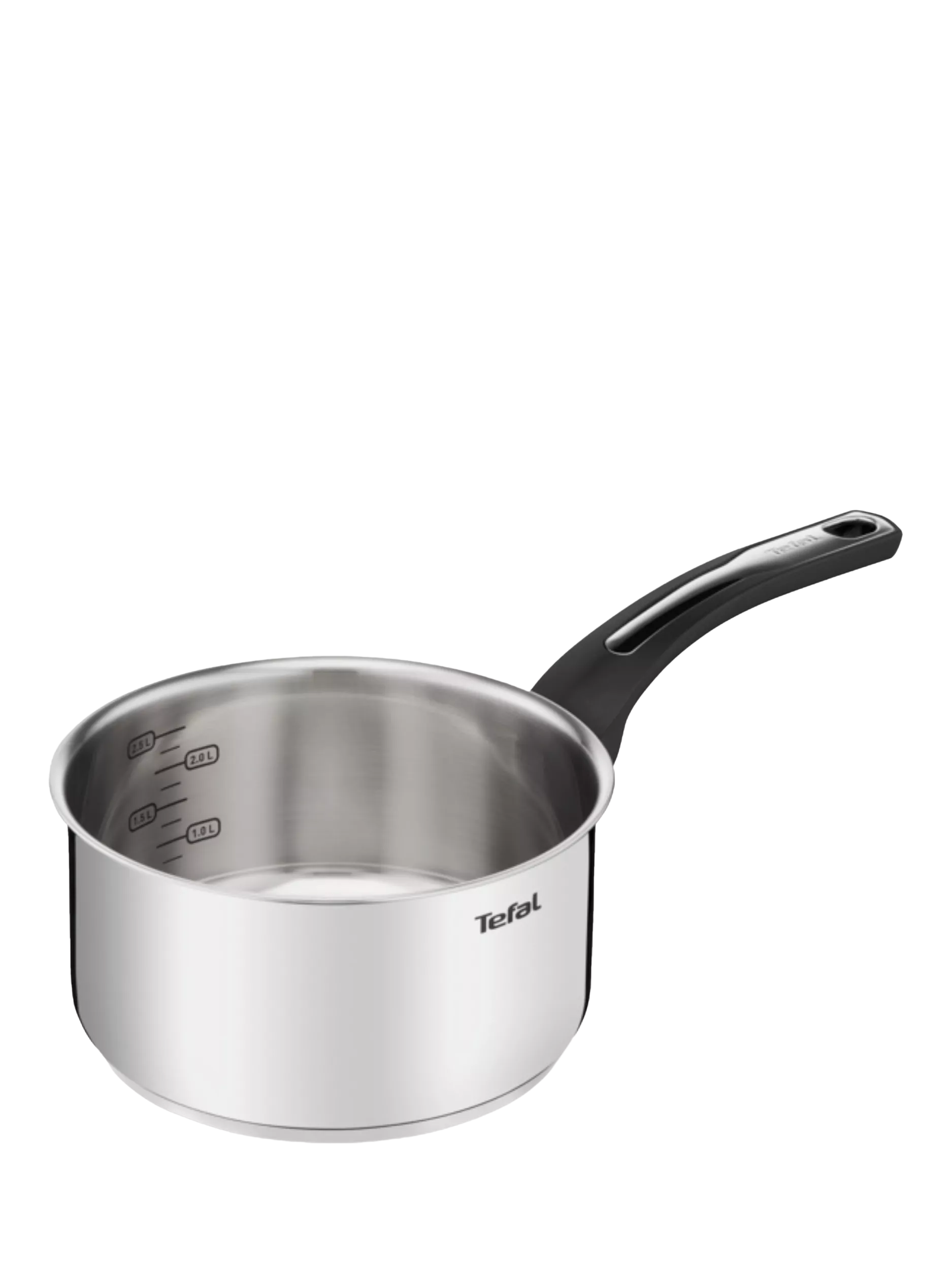 A stainless steel saucepan from the Tefal Emotion range. It features interior capacity markings to help you cook the right quantities when following recipes.
