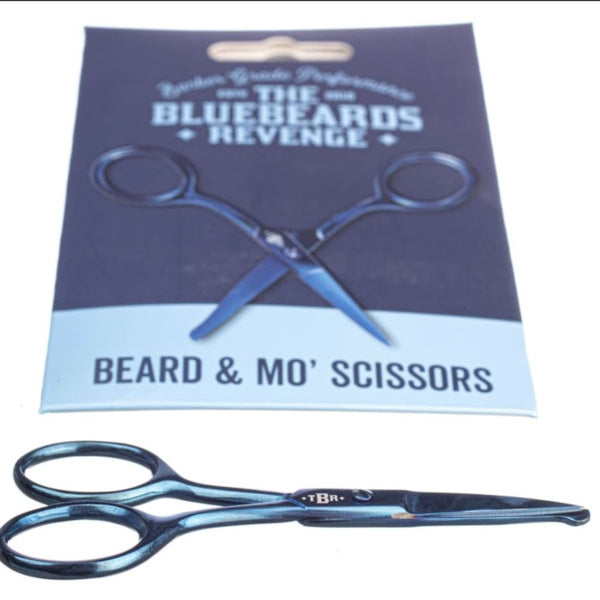 Facial hair, a great and manly concept… However, one can have too much of a good thing. Hence The Bluebeards Revenge Beard & Moustache scissors are on hand to providing you with the very tool for keeping your facial shrubbery under control… Nice and compact at 9cm long with a pleasing and durable blue plasma coating, you will find them much easier to handle and stow than a pair of garden shears… With health and safety clipboard firmly in hand, The Bluebeards Revenge would like to point out the obvious, please note they are sharp…So please don't use in a negligent manner or under the influence of strong 'lemonade' but just in case we have conveniently designed them to have a 'blunt' tip. For gentlemen of a 'certain age' although beards and mo's are the main target these scissors may also be gainfully employed trimming pesky nasal and eyebrow hair. It comes to us all…