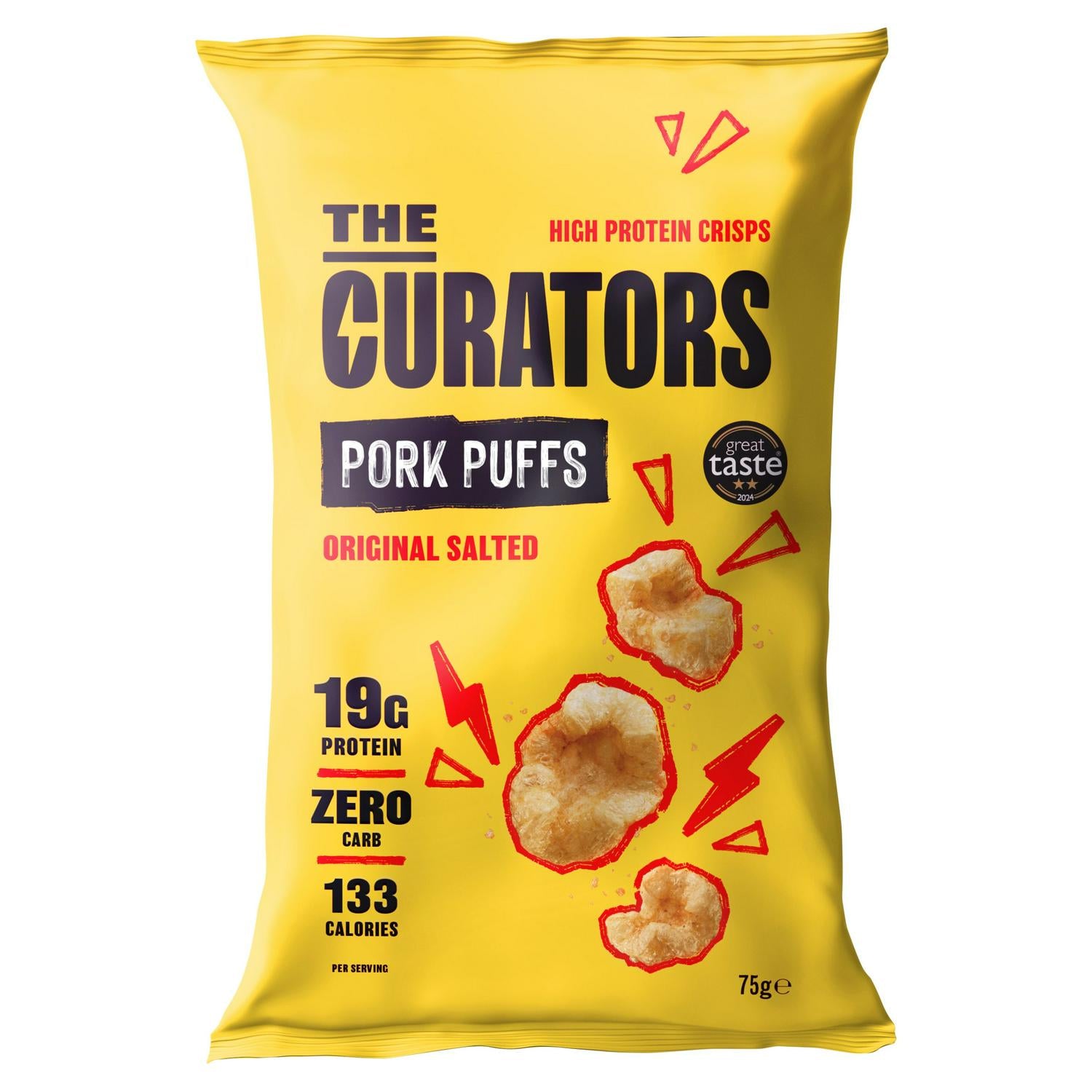 Light & Crunchy Pork Snacks Low-carb 18g Protein* 134 Calories* Gluten Free Supercharge Savoury *Per 25g serving Bold Flavour, Big Nutrition. Inspired by Latin street-food snacks ""Chicharrones"", our fabulous Pork Puffs are made from the finest pork rind, hot flashed for a light and crunchy texture and packed full of natural high protein. This savoury snack is our take on classic English pork scratchings. A satisfying light crisp-like crunch, a touch of salt and rich umami depth. This is great low carb alternative to regular potato crisps. Healthy Meat Snack Ideal for: The gym, lunchbox snacks & anything in between.