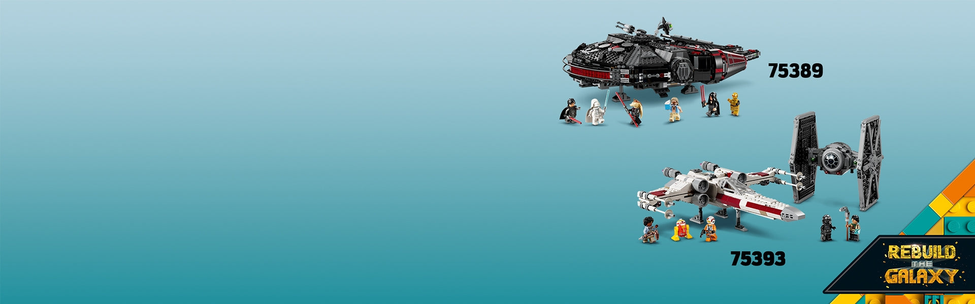 Turn the LEGO® Star Wars™ universe upside down with The Dark Falcon buildable toy vehicle set for kids (75389), which features a dark version of the Millennium Falcon, as seen in the LEGO Star Wars: Rebuild the Galaxy Disney+ special. A thrilling birthday gift for boys, girls and any fans aged 10 and over, this LEGO Star Wars brick-built starship toy has flip-up panels for easy access to the detailed interior, including Darth Jar Jar’s throne, the command centre, hyperdrive, entertainment area and jail cell. Spring-loaded shooters, rotating cannons and a removable gunner post add to the action-play possibilities.
