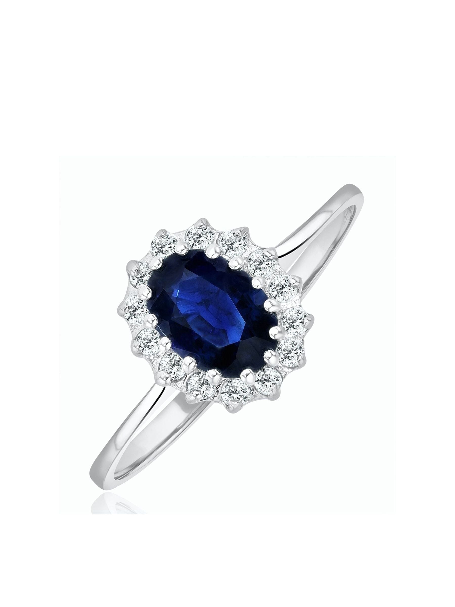 This majestic ring features a dazzling 0.95CT oval sapphire which is surrounded by 0.14CT of Premium Quality Diamonds and secured in a 9K white gold setting and band. Described by our customers as absolutely stunning , this sapphire ring will make a special someone very happy indeed. The dimensions are 10mm x 8mm.