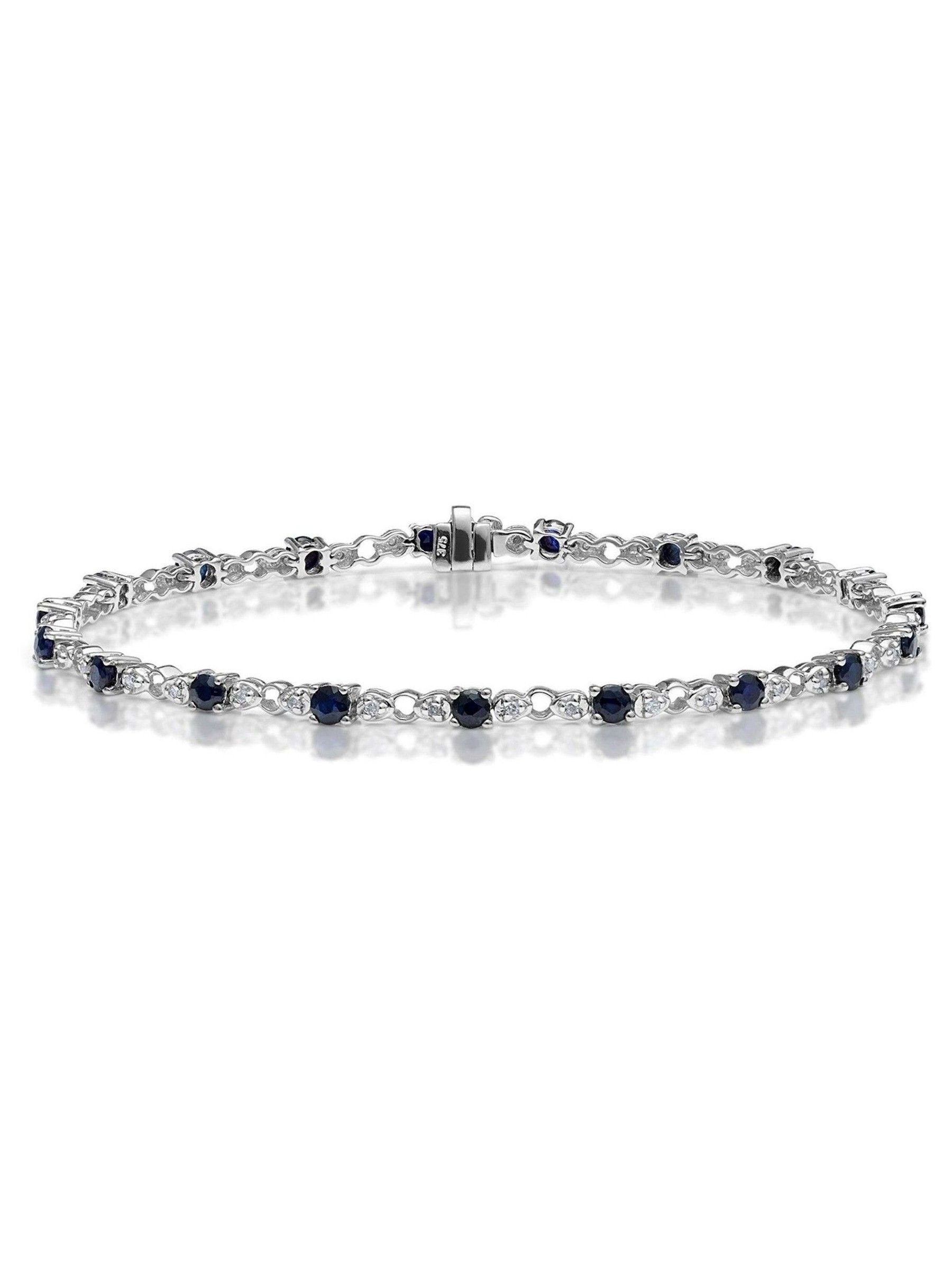If you're looking for a special bracelet for someone you love, this stunning sapphire and diamond bracelet makes the perfect gift. The beautifully handcrafted sterling silver setting displays exquisite blue sapphires and sparkling, lab-grown diamonds.