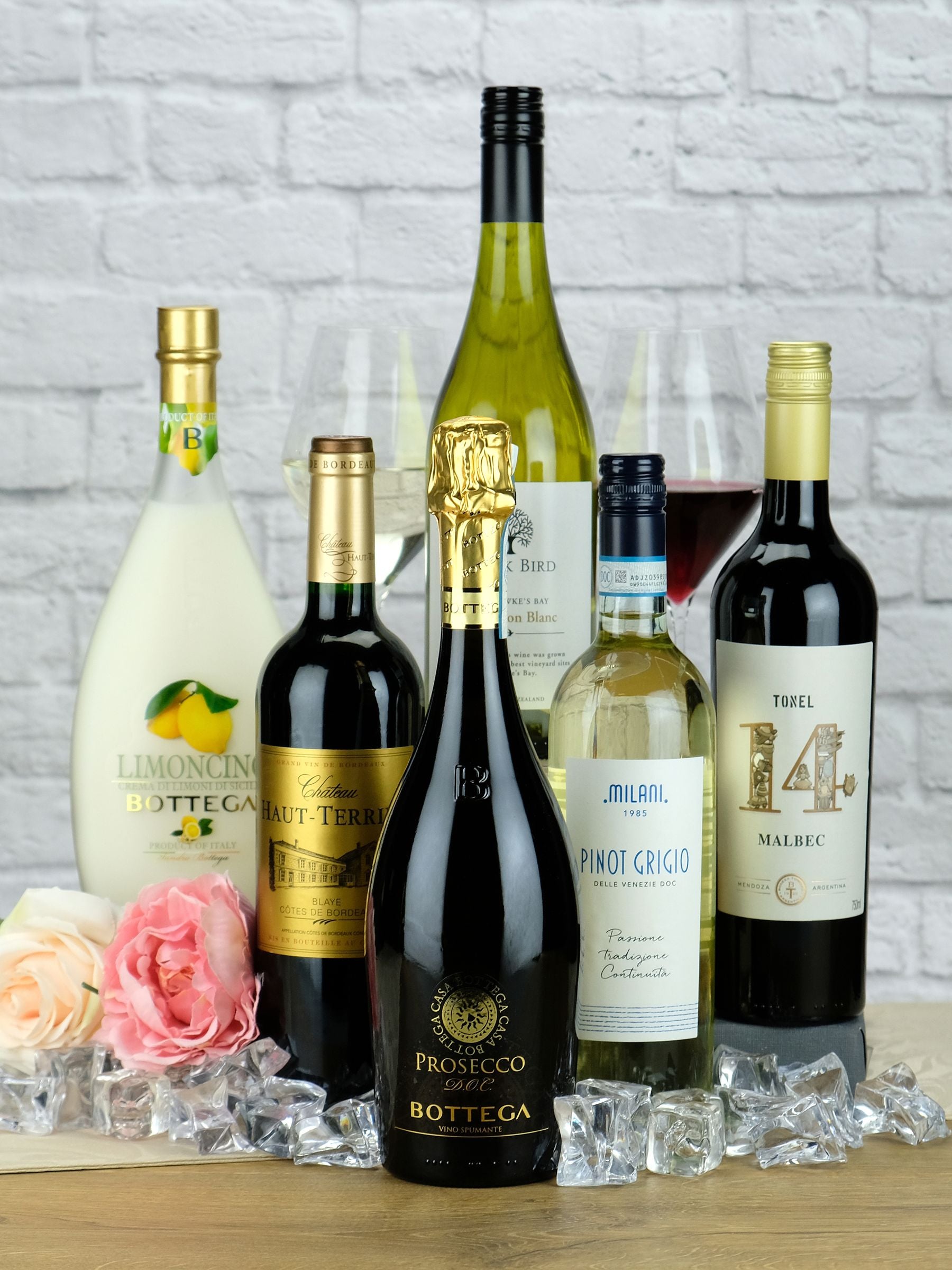 Finish off the evening with a glass of Lemon cream liqueur from Italys famous Bottega Estate. The perfect night of wines in one box! Volume 5x 750ml ABV 11%-12.5%, 1x 500ml 17.0%. Wine glass not included. If any wines are unavailable a suitable replacement will be substituted.