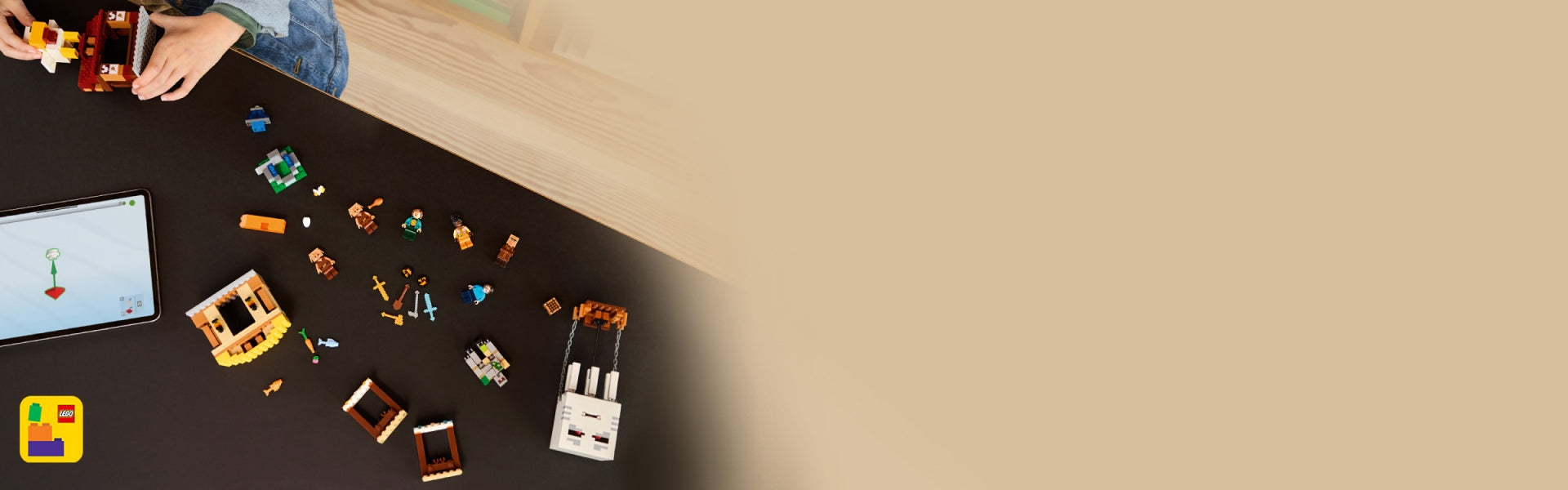 The set features popular characters from the video game: Steve, Natalie, Dawn, 2 piglins, a ghast balloon, villager, baby chicken and a posable iron golem figure. The balloon has room for the piglins and incorporates a disc shooter. Set amongst the village are market stalls, Steve's fried chicken restaurant, his crafting shack and a fountain, which kids can ‘explode’ using a built-in feature. The restaurant’s roof is topped with a large chicken model that includes a fun egg-laying function. For digital fun, the LEGO Builder app lets kids zoom in, rotate models in 3D and track their progress.