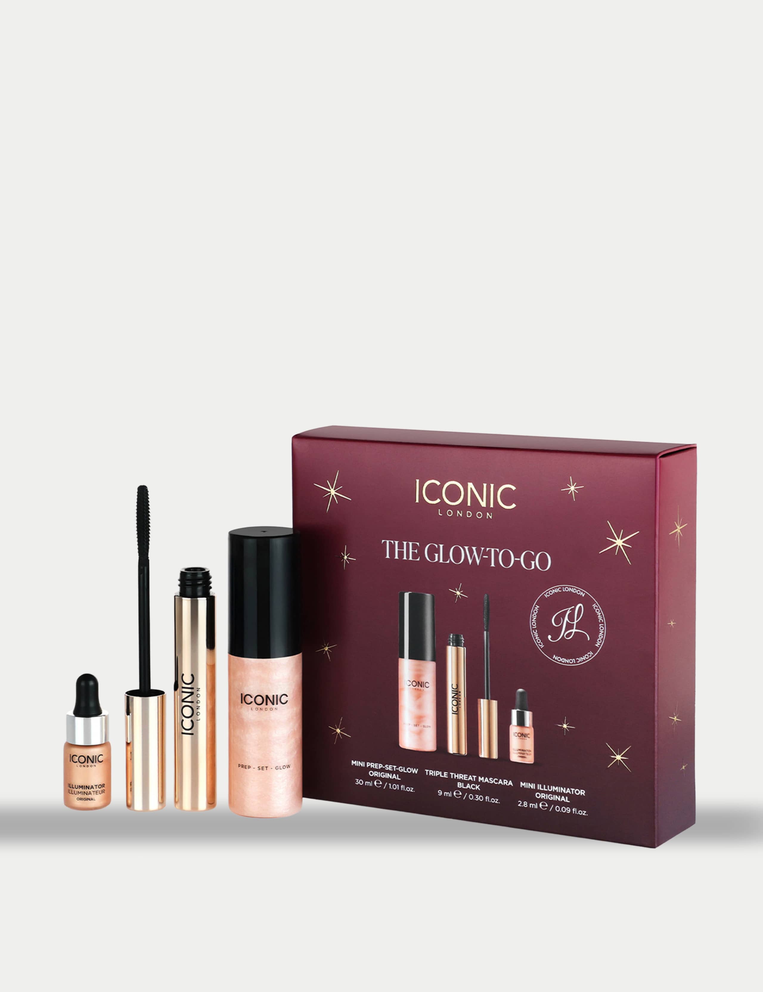 Read MoreGet ready to Glow-to-Go with this 3 piece set of ICONIC London's best sellers! Highlight on the go with our mini sizes of Prep Set Glow and Illuminator and enhance your lashes with Triple Threat Mascara.